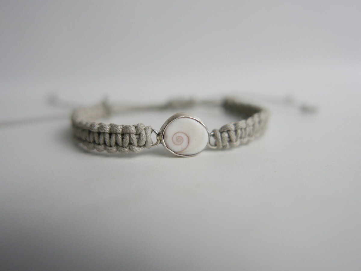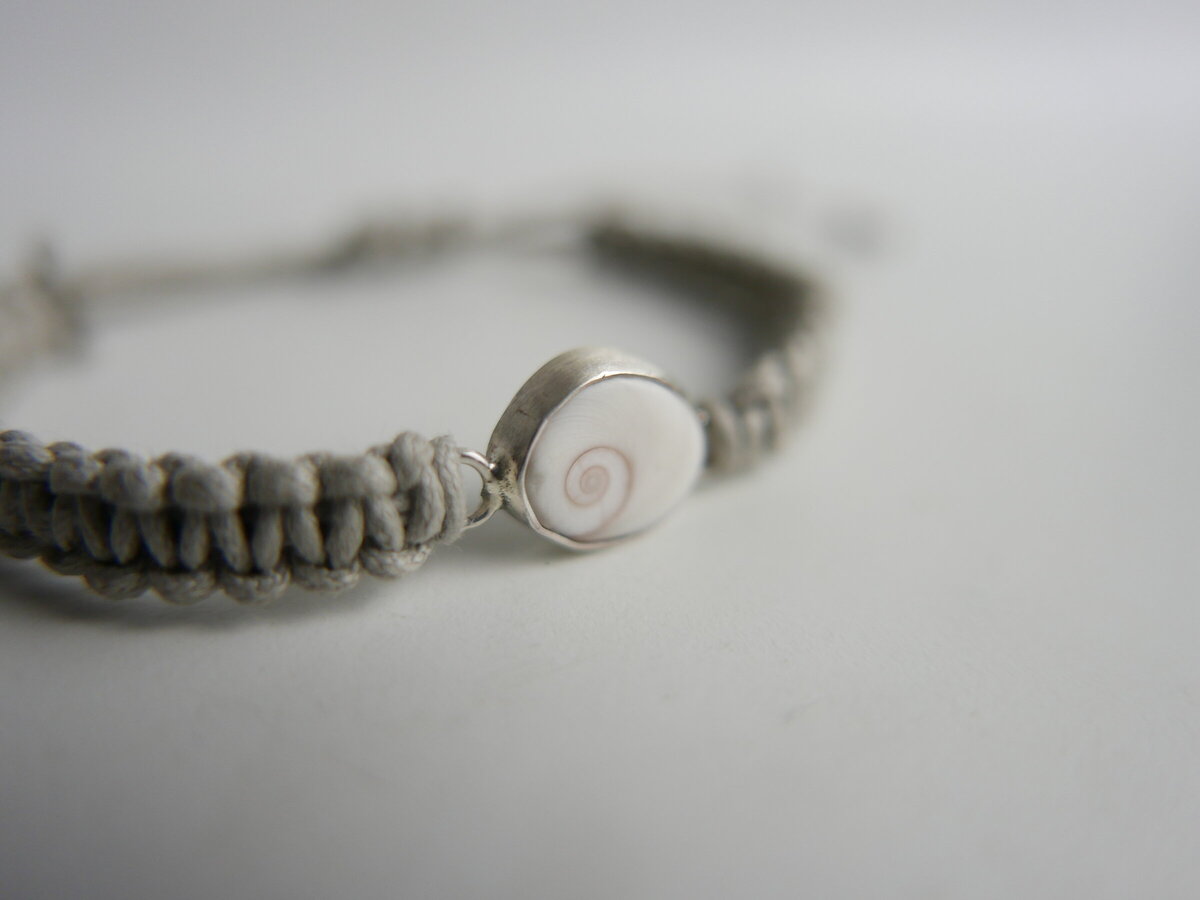 Braçalet amb un ull de Santa Llúcia de la Costa Brava fet amb macramé.