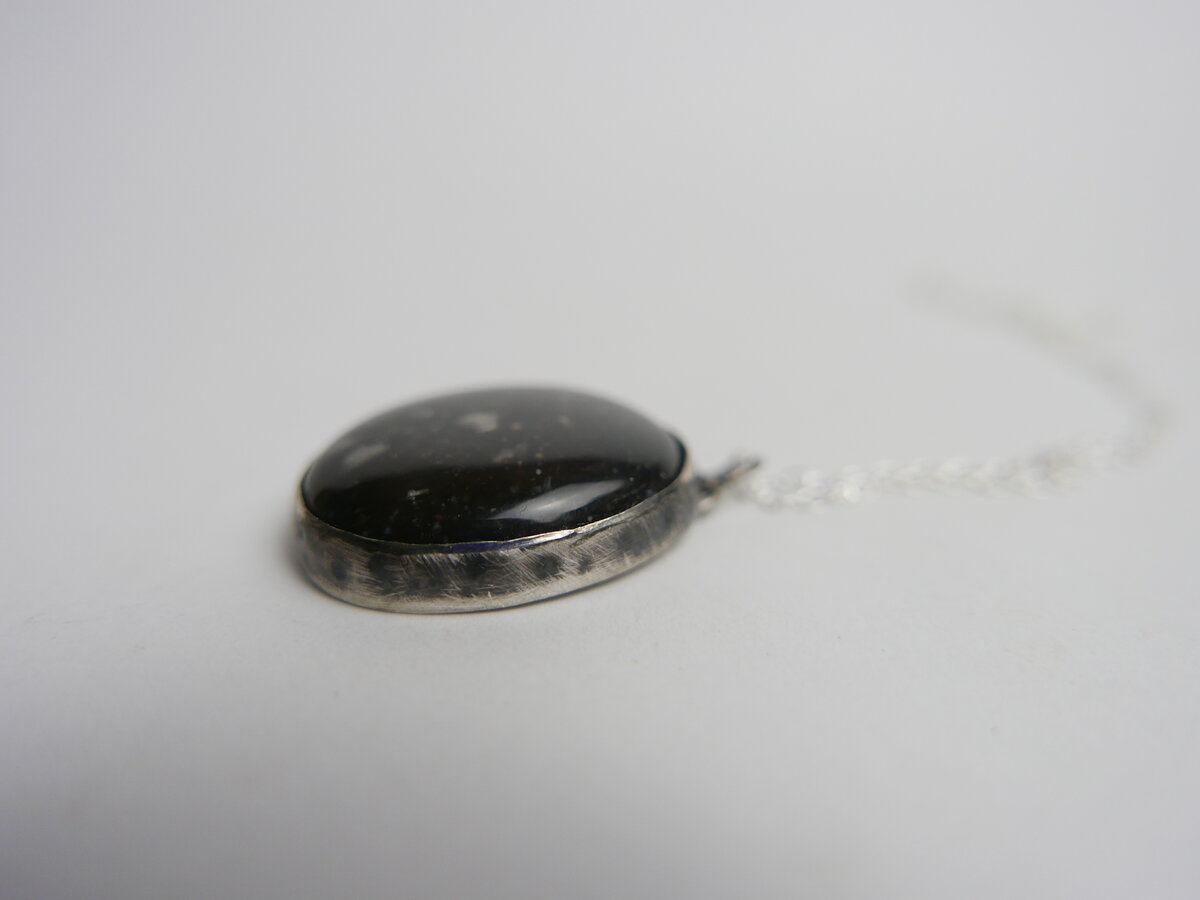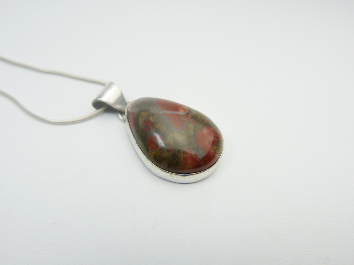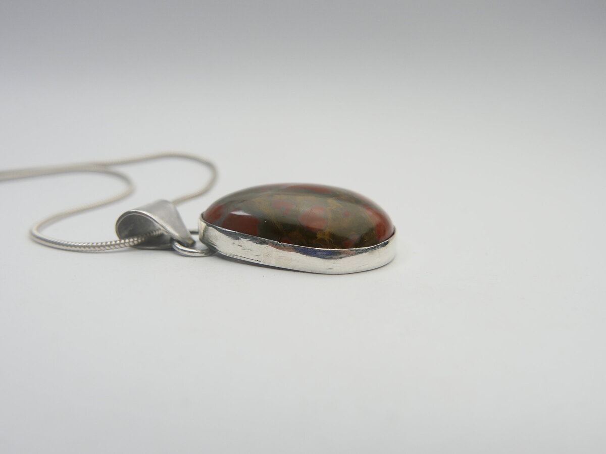 Penjoll gran amb un bonic jaspí de la platja de blanes. S'entrega amb cadena de 44cm.