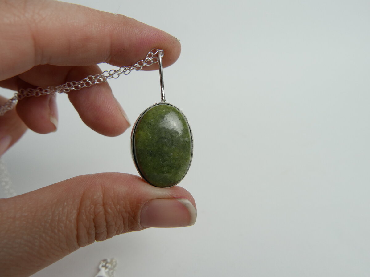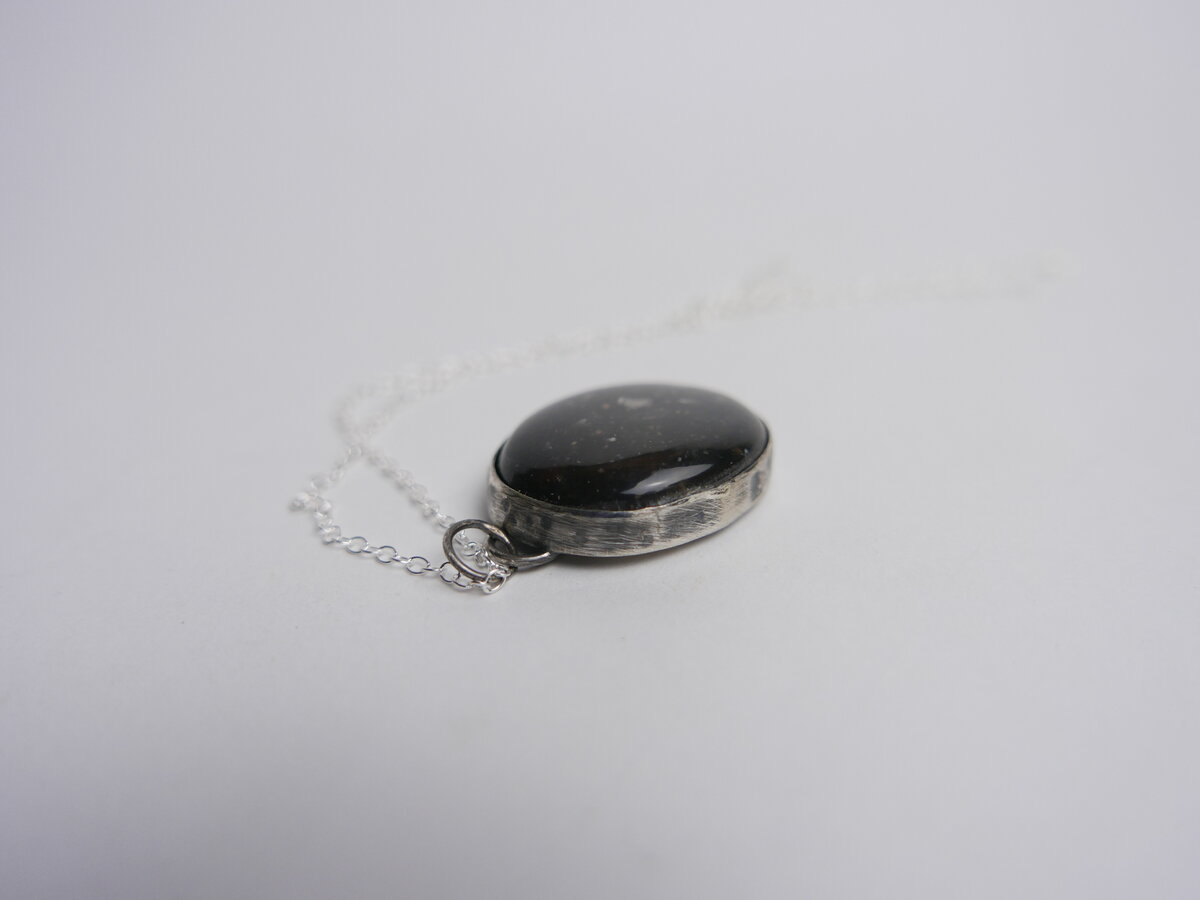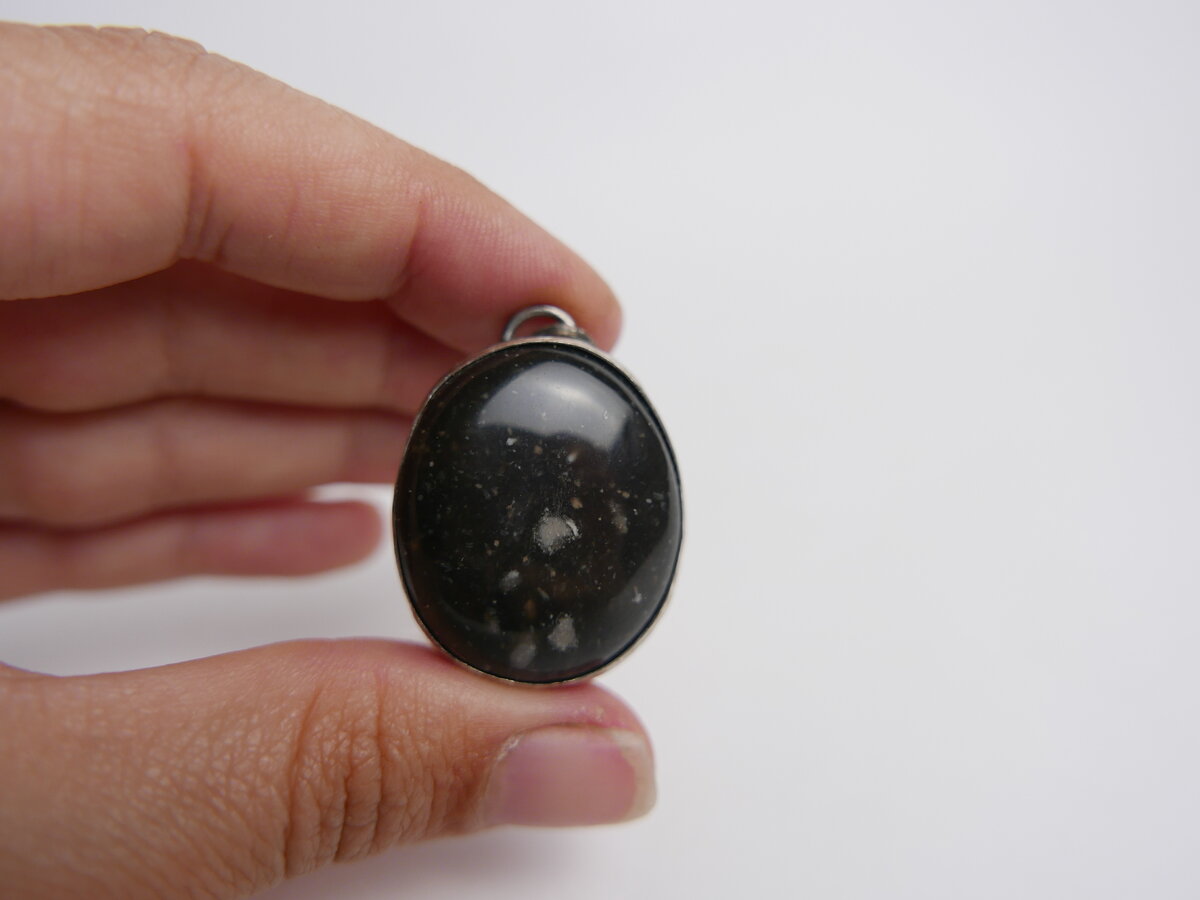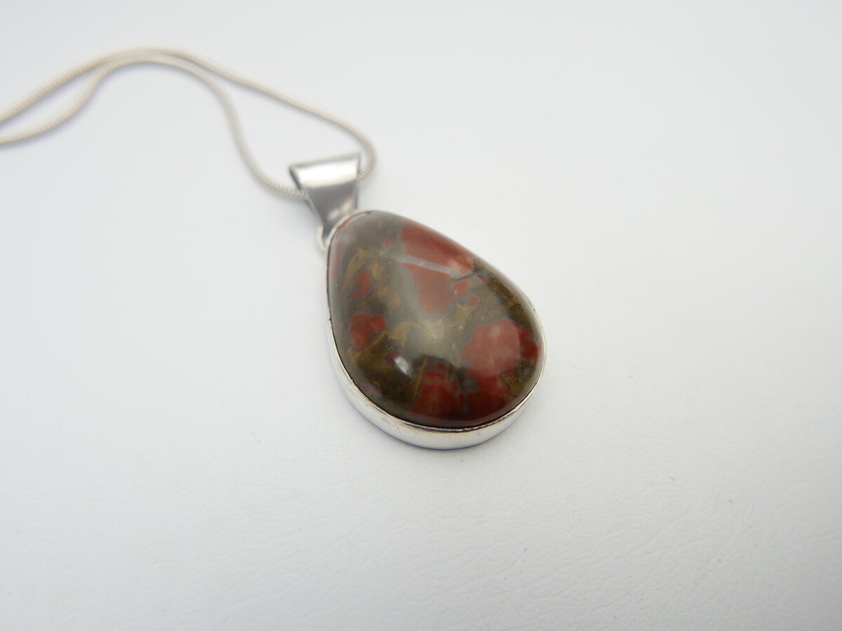 Penjoll gran amb un bonic jaspí de la platja de blanes. S'entrega amb cadena de 44cm.