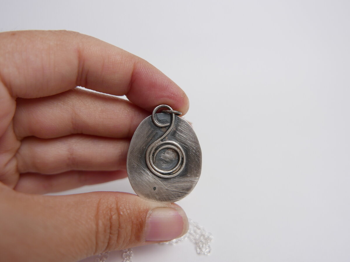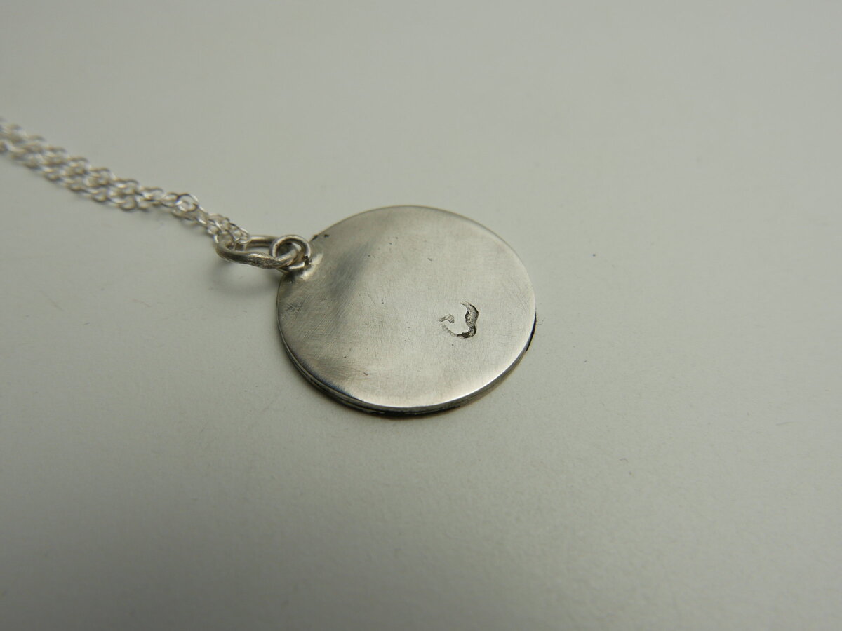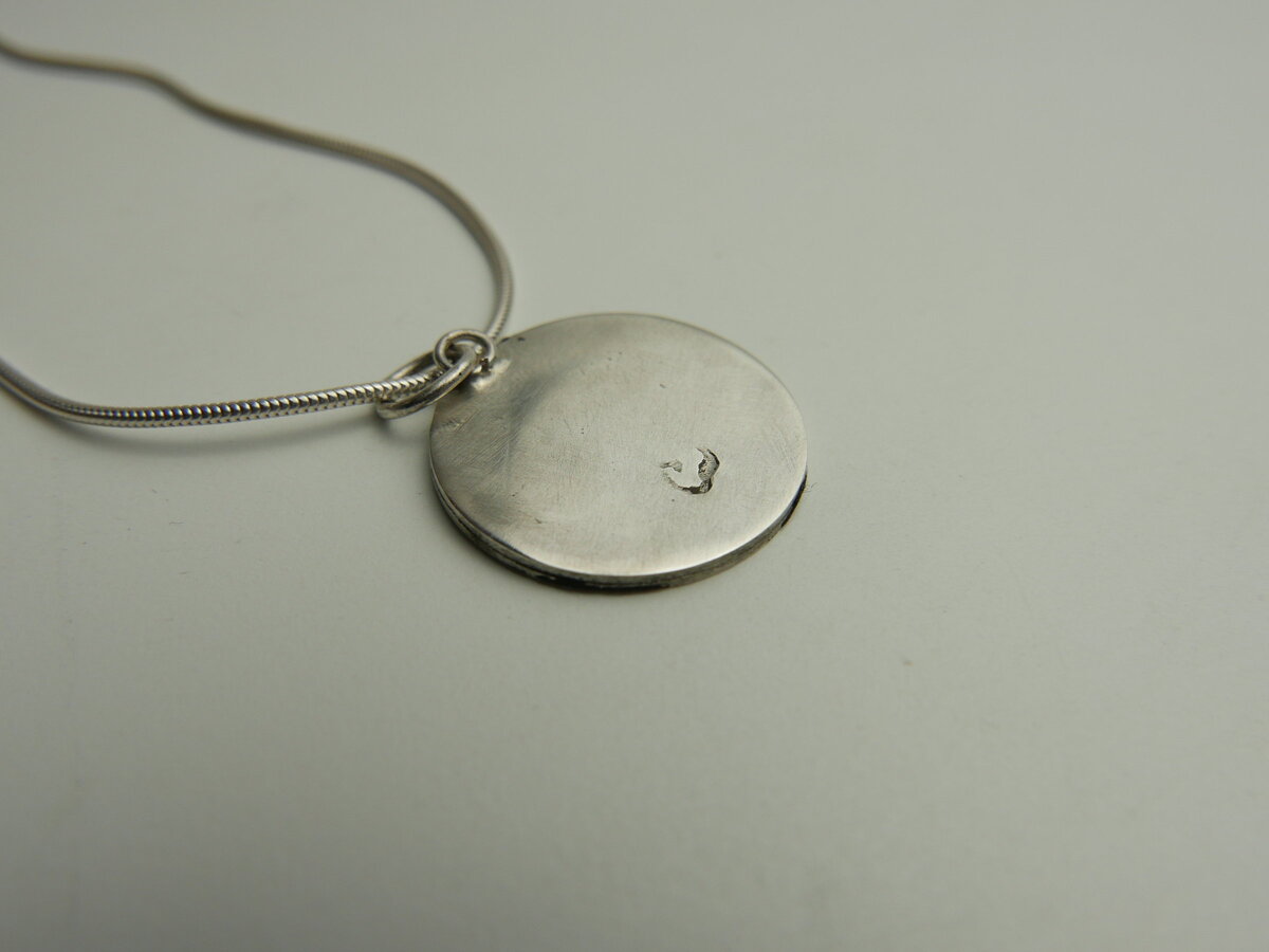 Penjoll Blanes amb el fons amb efecte ennegrit. S'entrega amb una cadena de tipus cadeneta de 44cm.