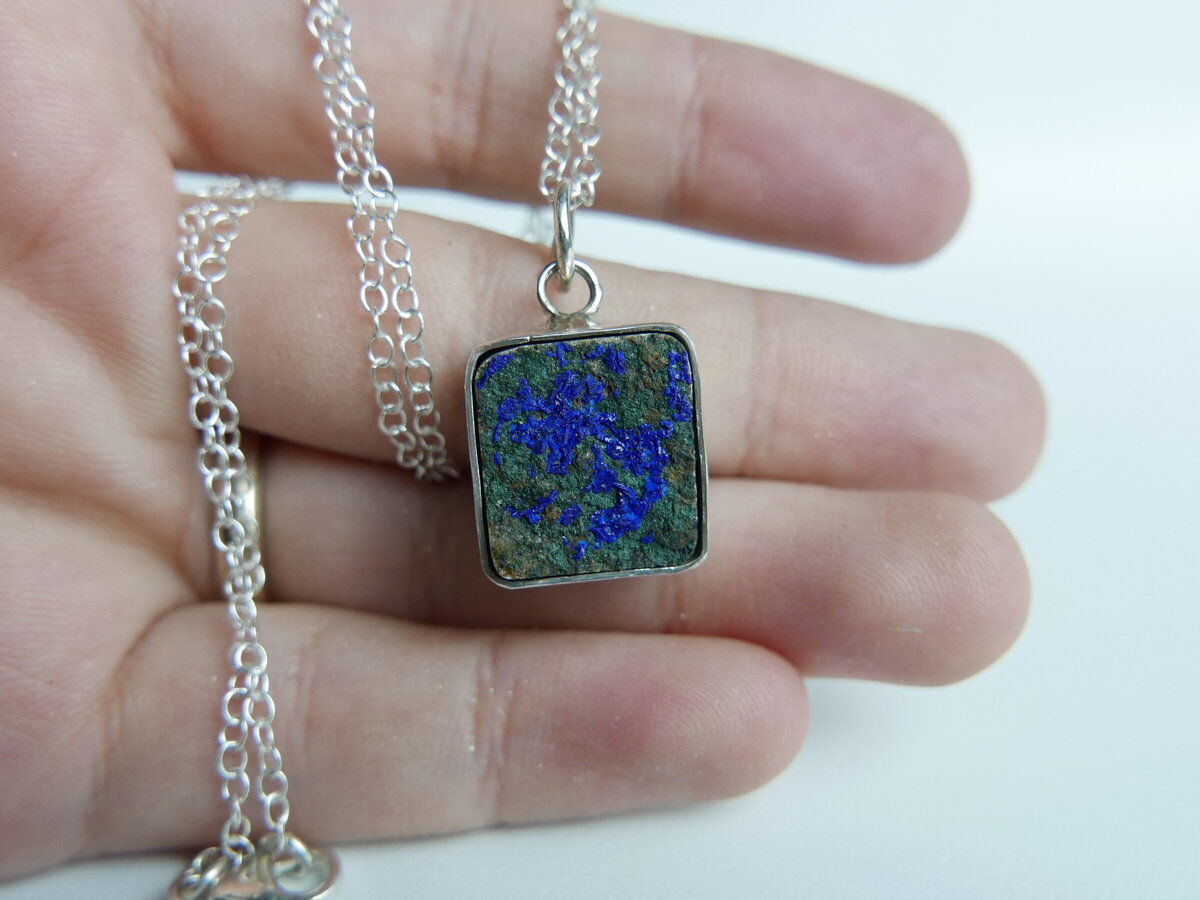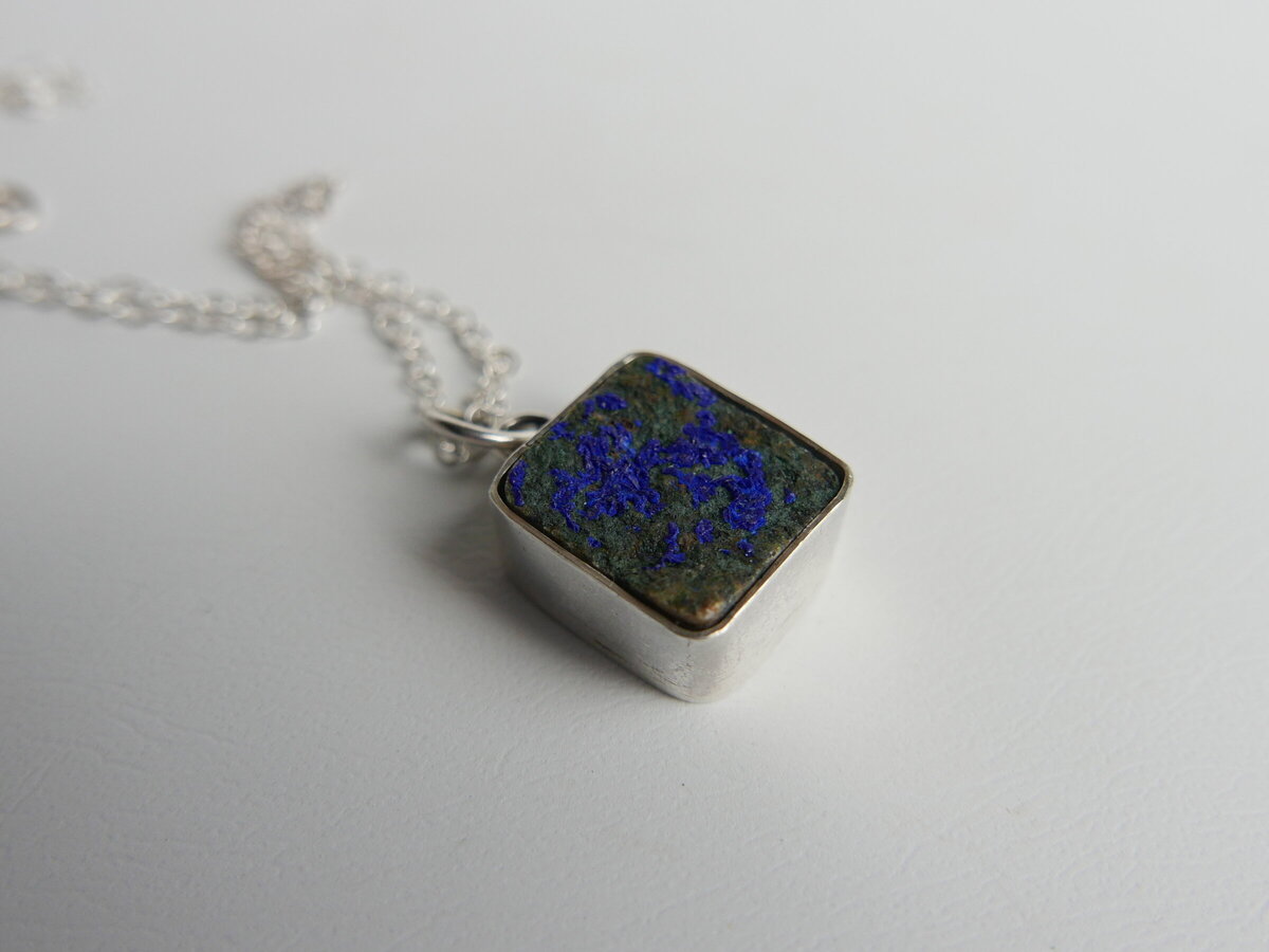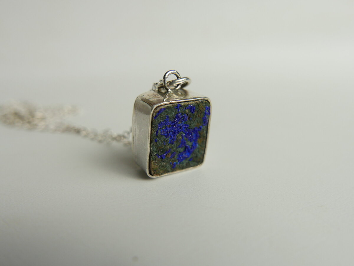 Penjoll amb una bonica drusa amb cristallets d'atzurita de la vall d'uixó (Castelló). S'entrega amb la cadeneta.