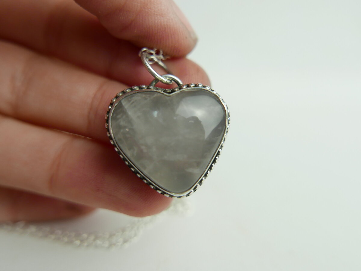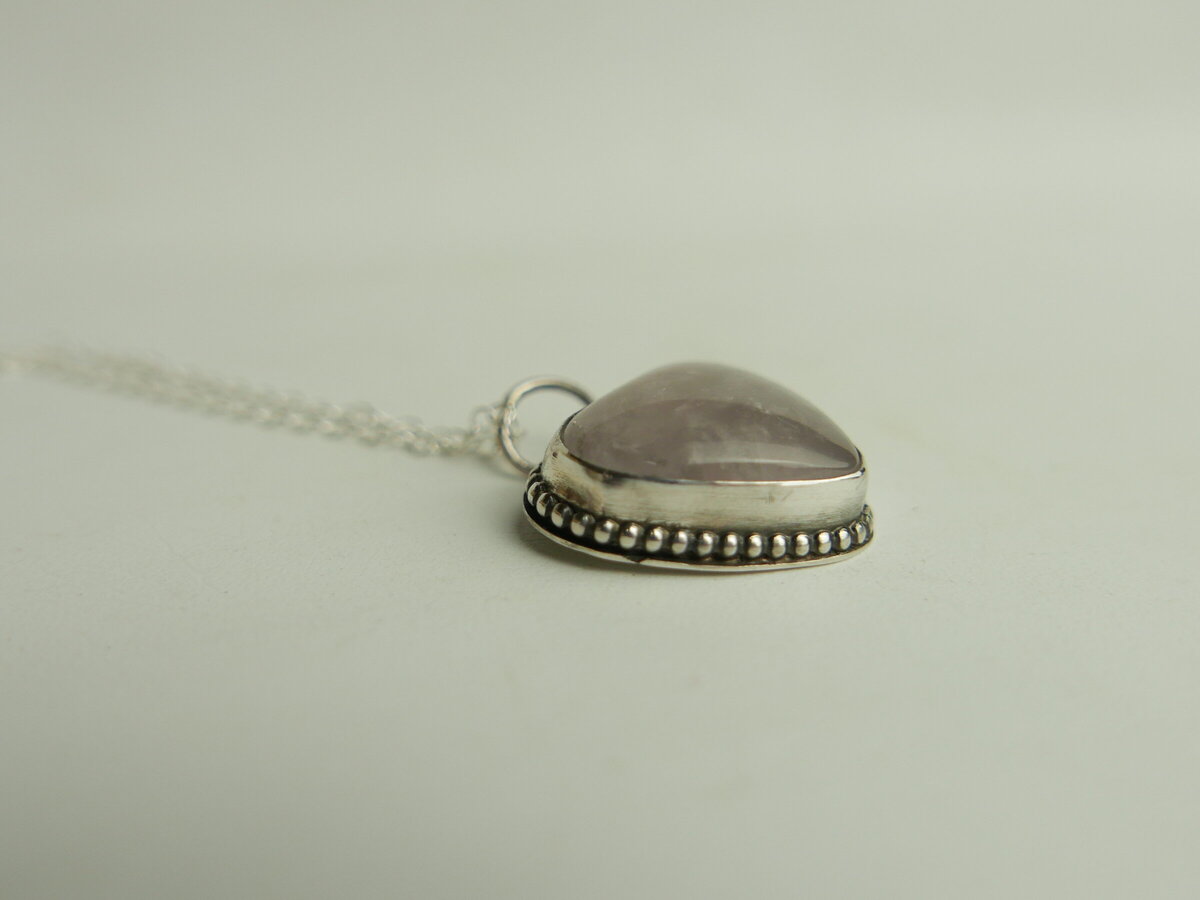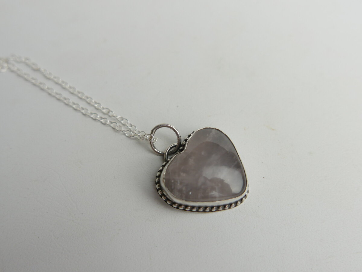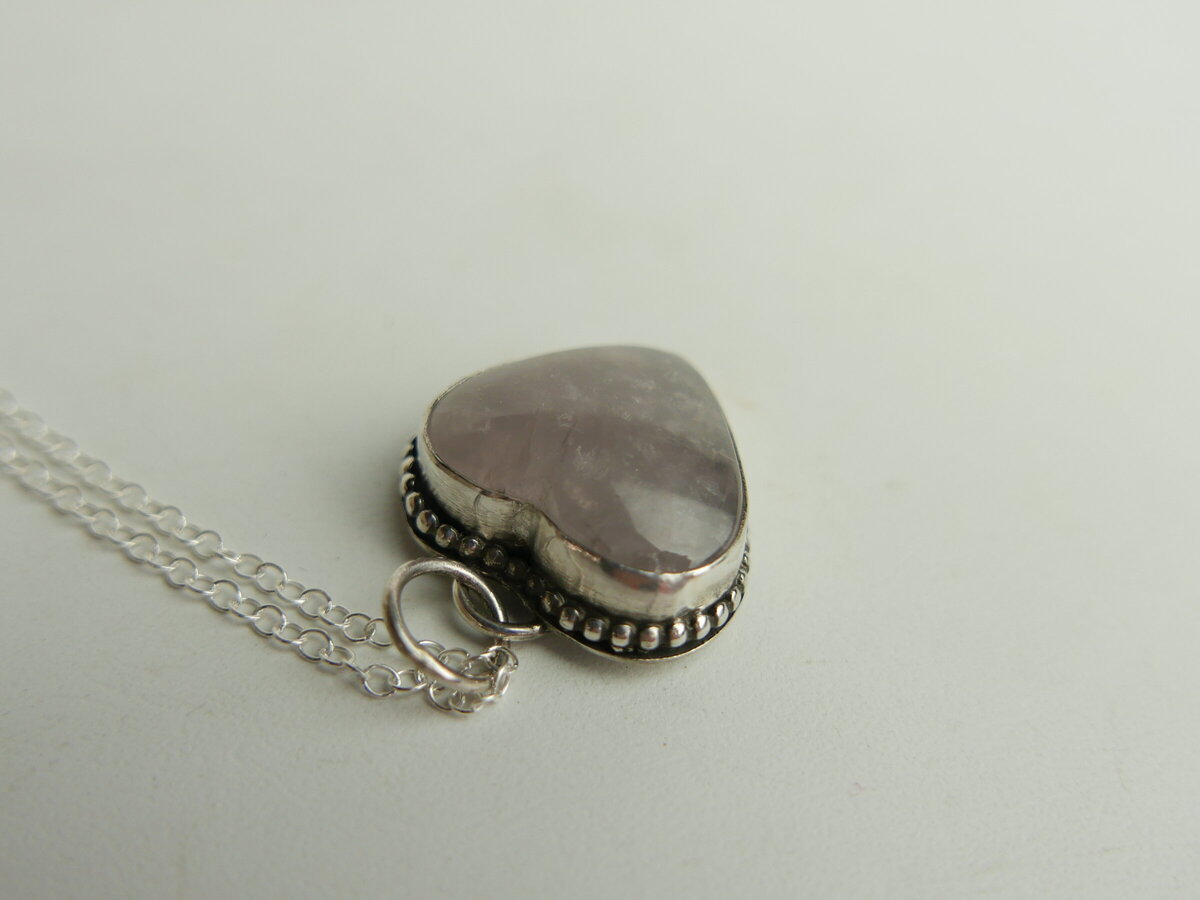 Penjoll en forma de cor amb un quars rosa de Pereña (Salamanca). S'entrega amb la cadena de 44 cm.