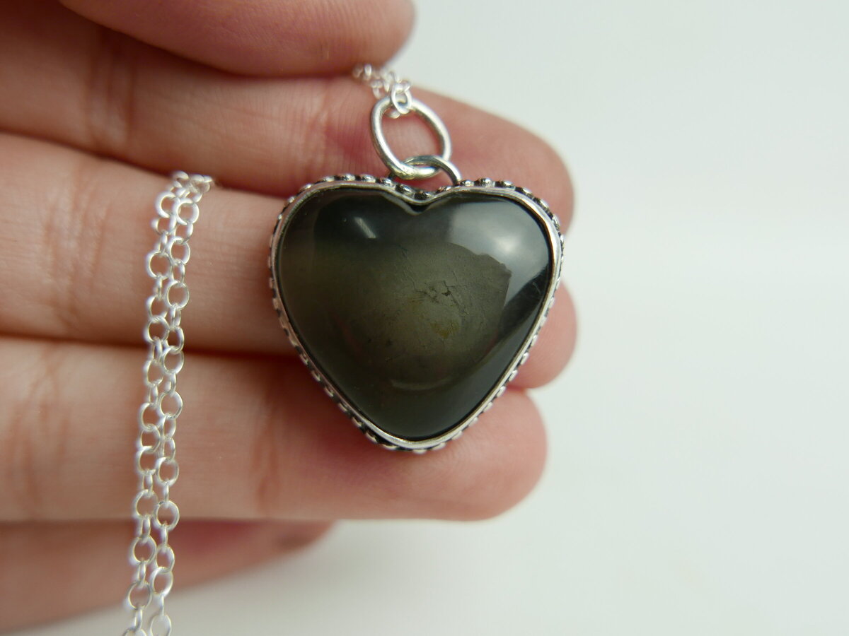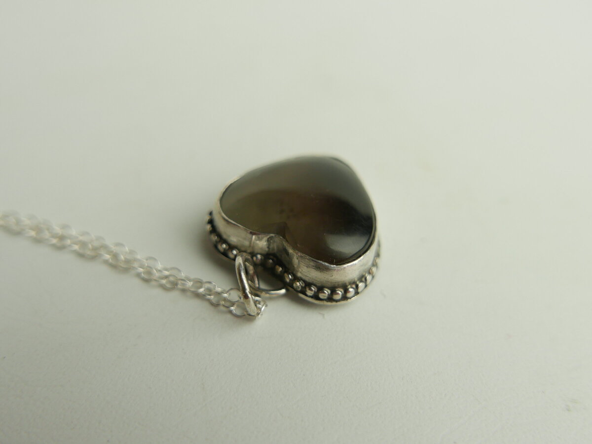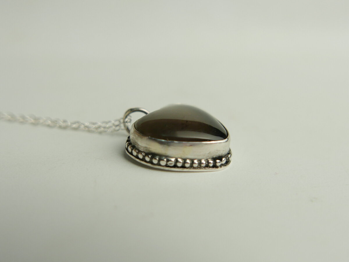 Penjoll en forma de cor amb un quars fumat de Sils (Girona). S'entrega amb la cadena de 44 cm.