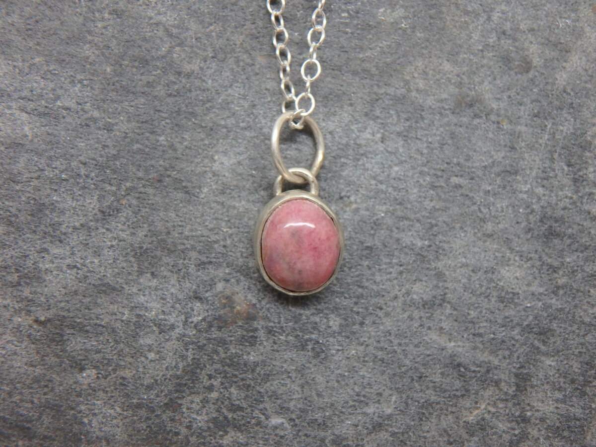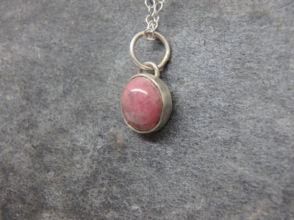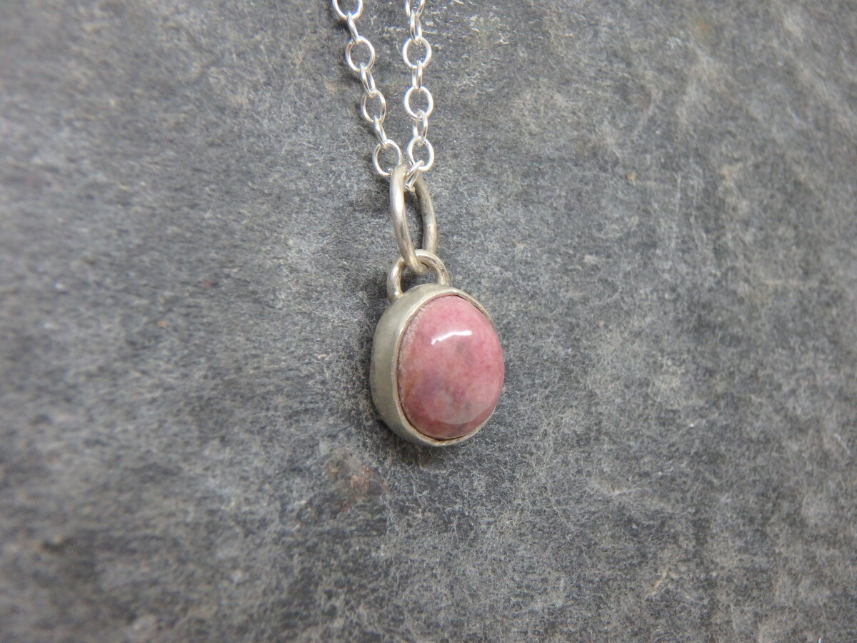Penjoll amb un mini caboixó de rodonita del priorat, amb cadena. Senzill i bonic per portar cada dia