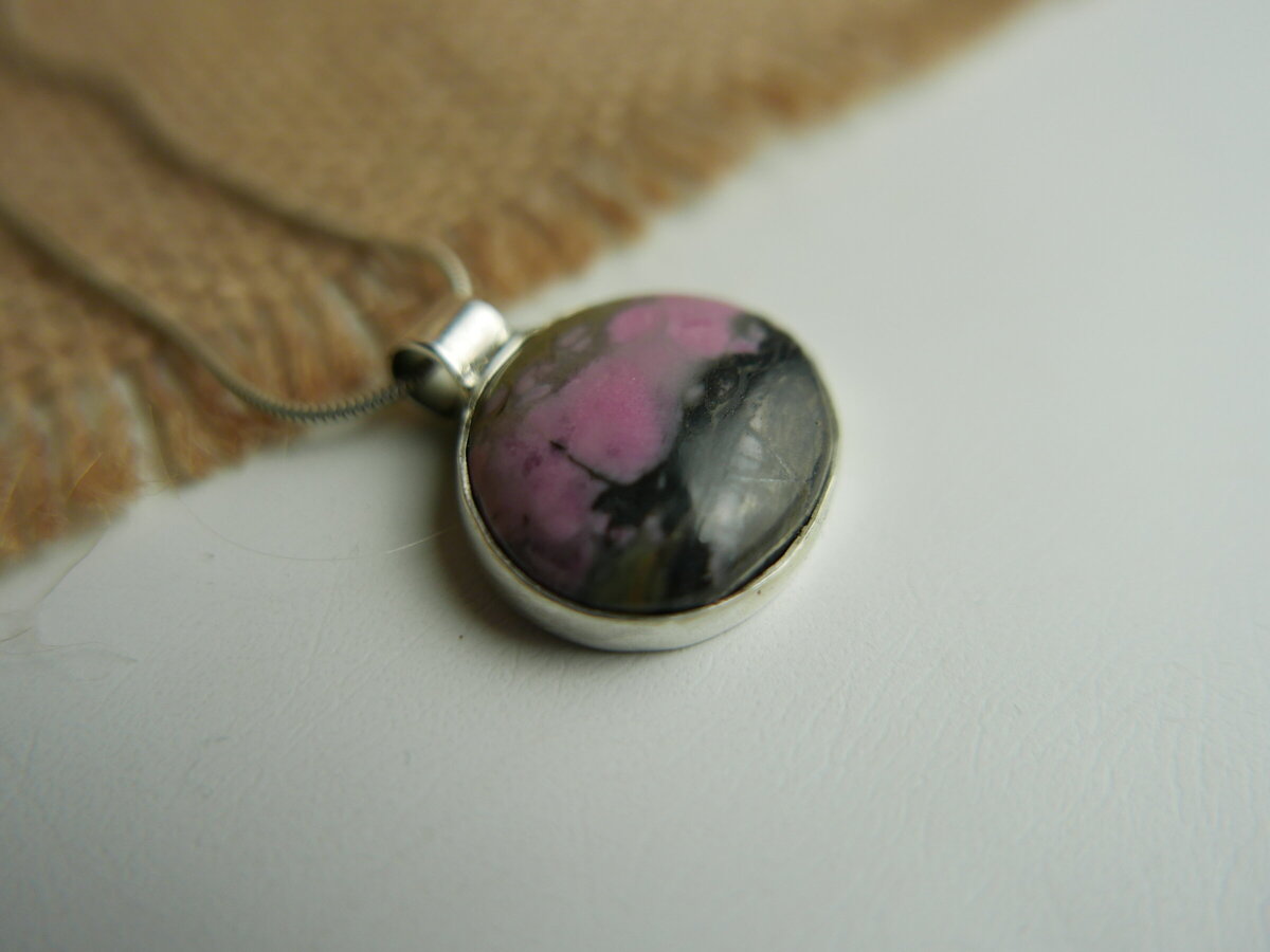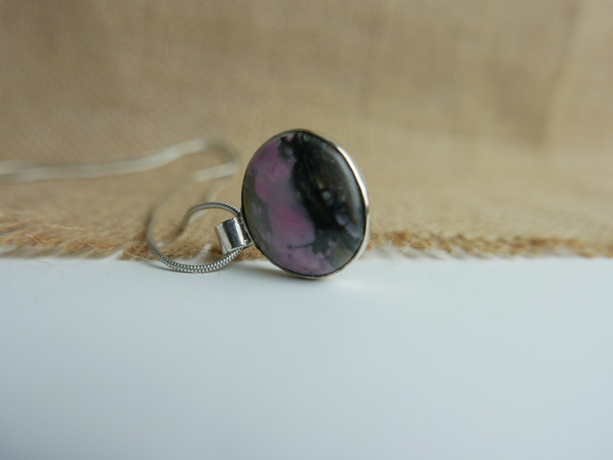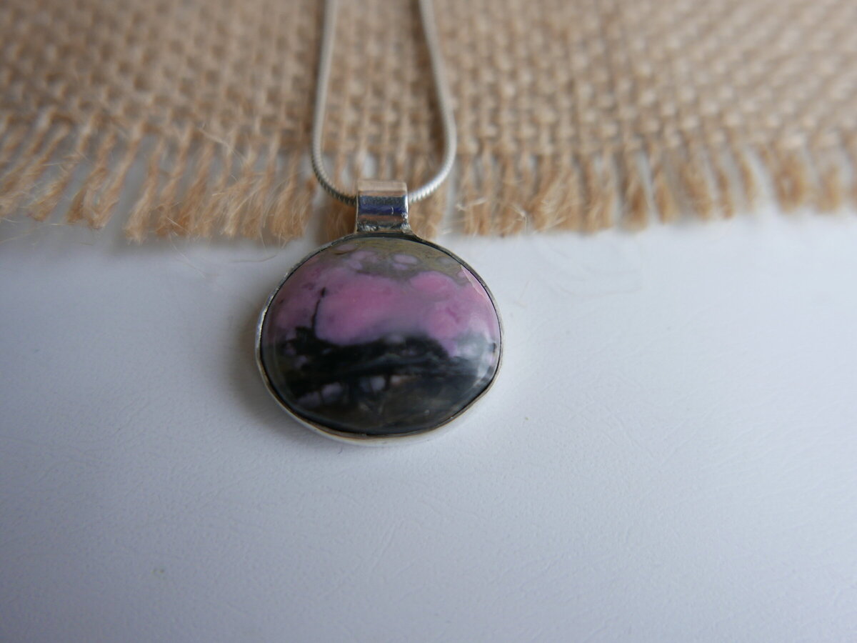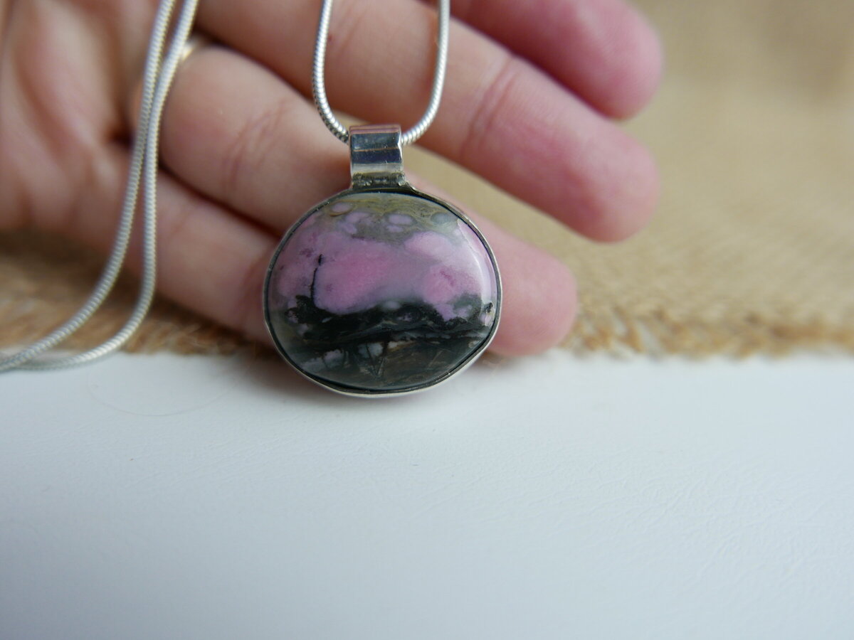 Penjoll amb un caboixó de rodonita del priorat, Tarragona. S'entrega amb cadena tipus serp de 44 cm.