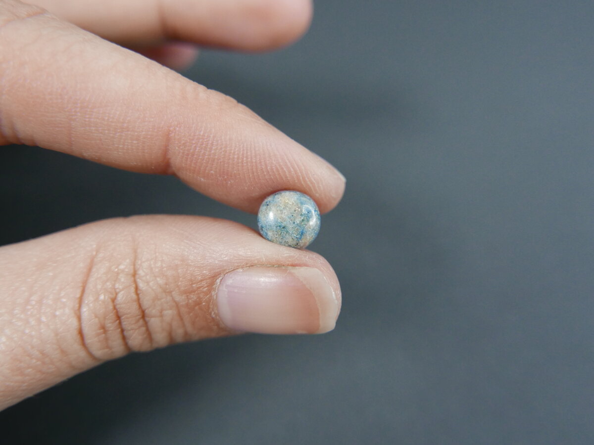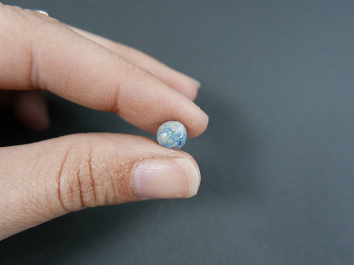 Caboixó d'atzurita de la Vall d'Uixó (Castelló). Fa 7mm x 7mm x 4,5mm.