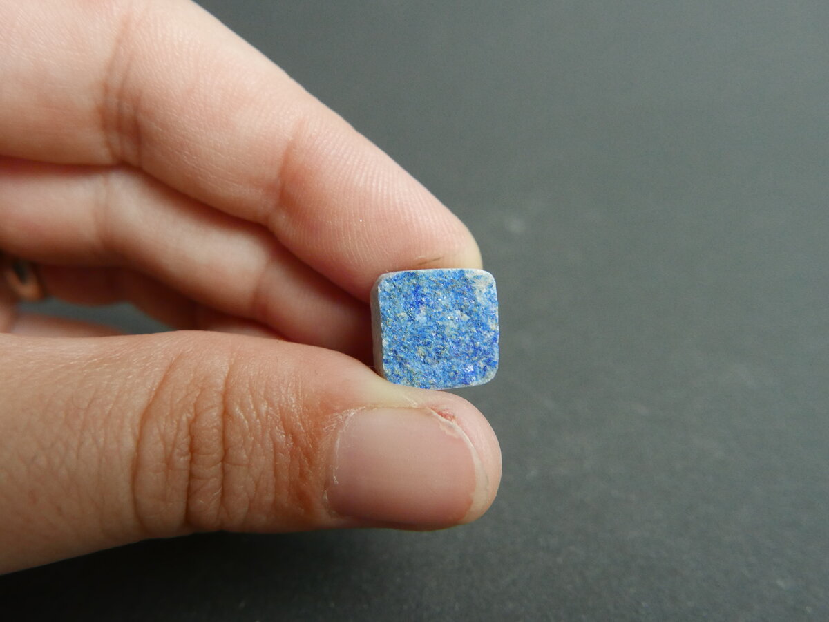 Caboixó d'atzurita de la Vall d'Uixó (Castelló). Fa 14mm x 14mm x 3,5mm.
