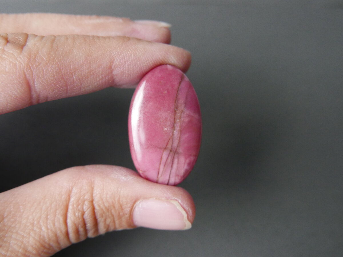 Caboixó de rodonita del Priorat, Tarragona. Fa 31mm x 18mm x 4,5mm.