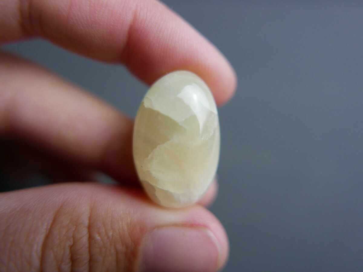 Caboixó de calcita niquelífera de Peramea (Lleida). Fa 25mm x 19mm x 6mm.
