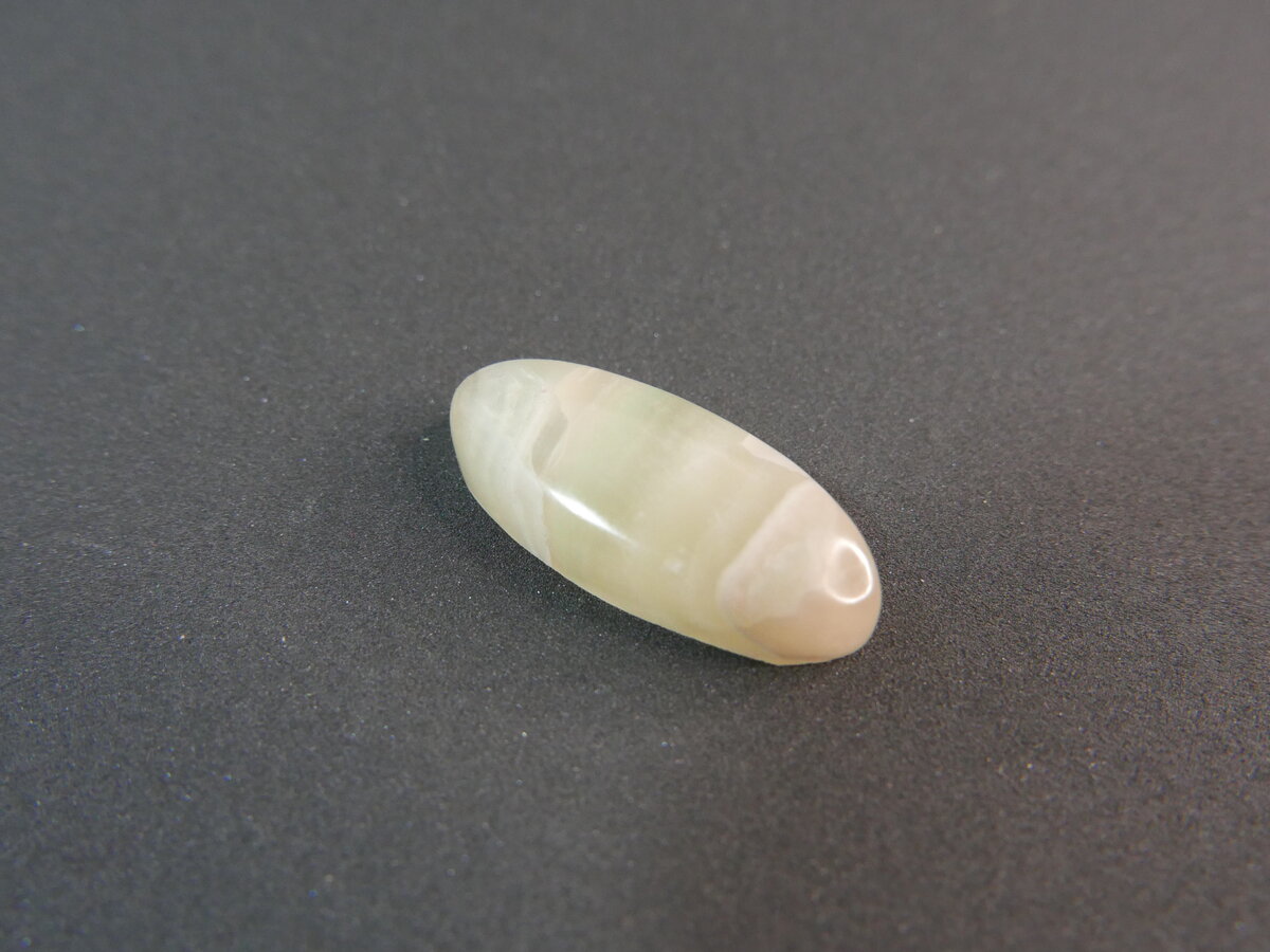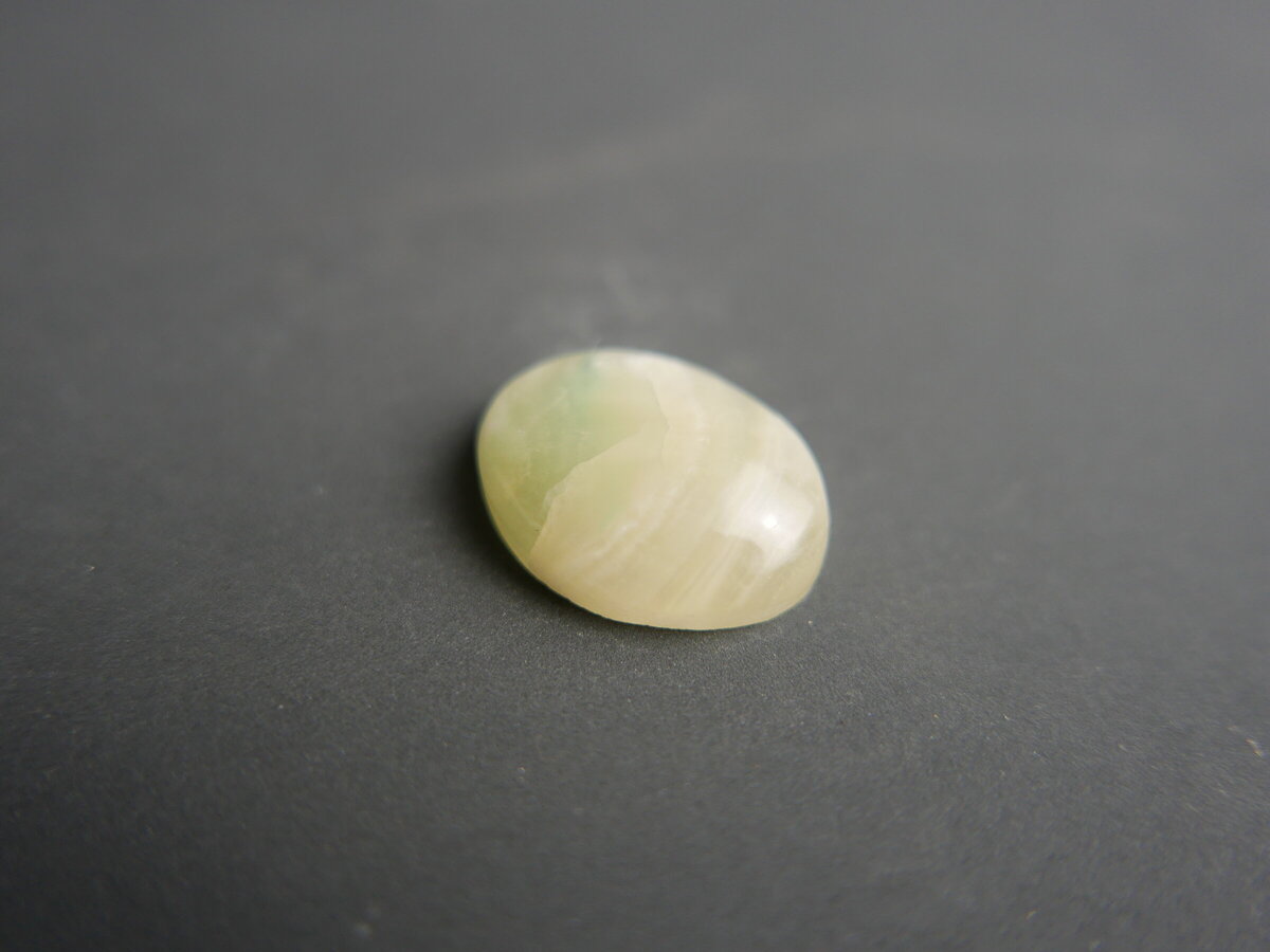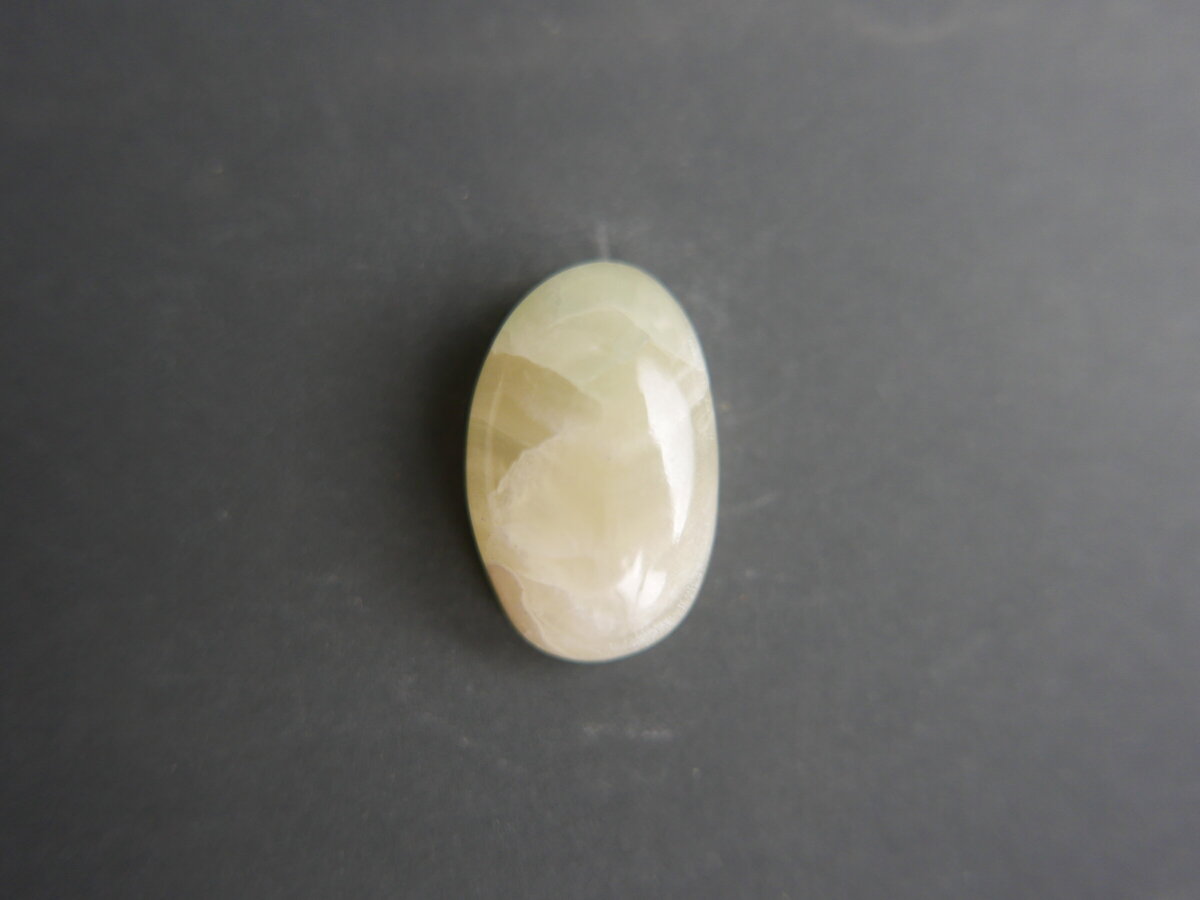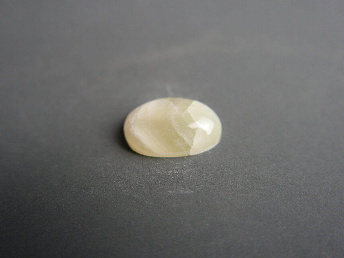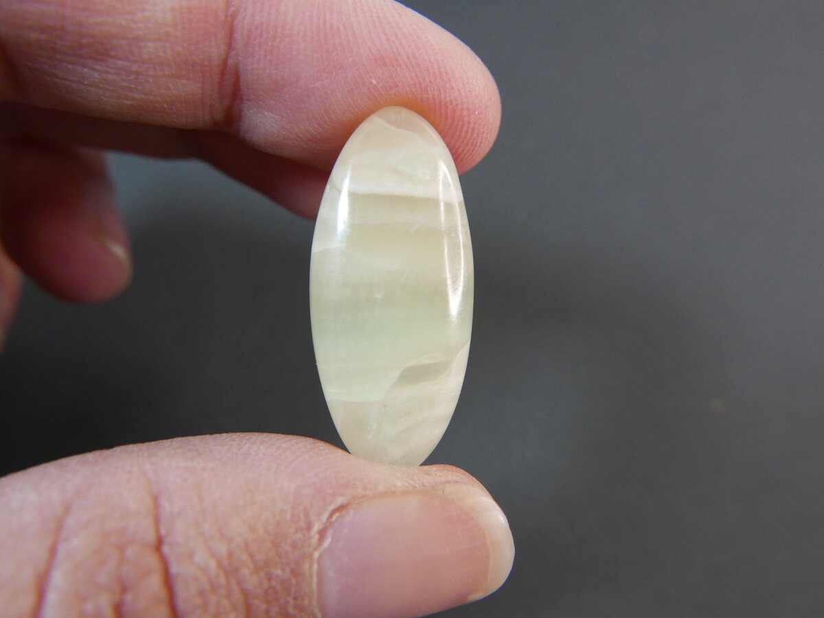 Caboixó de calcita niquelífera de Peramea (Lleida). Fa 29mm x 12,5mm x 6mm.
