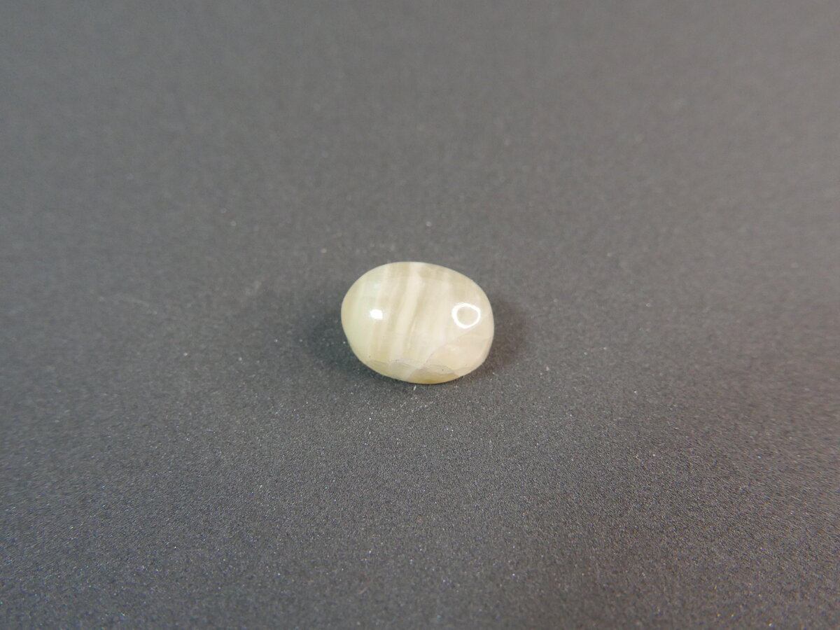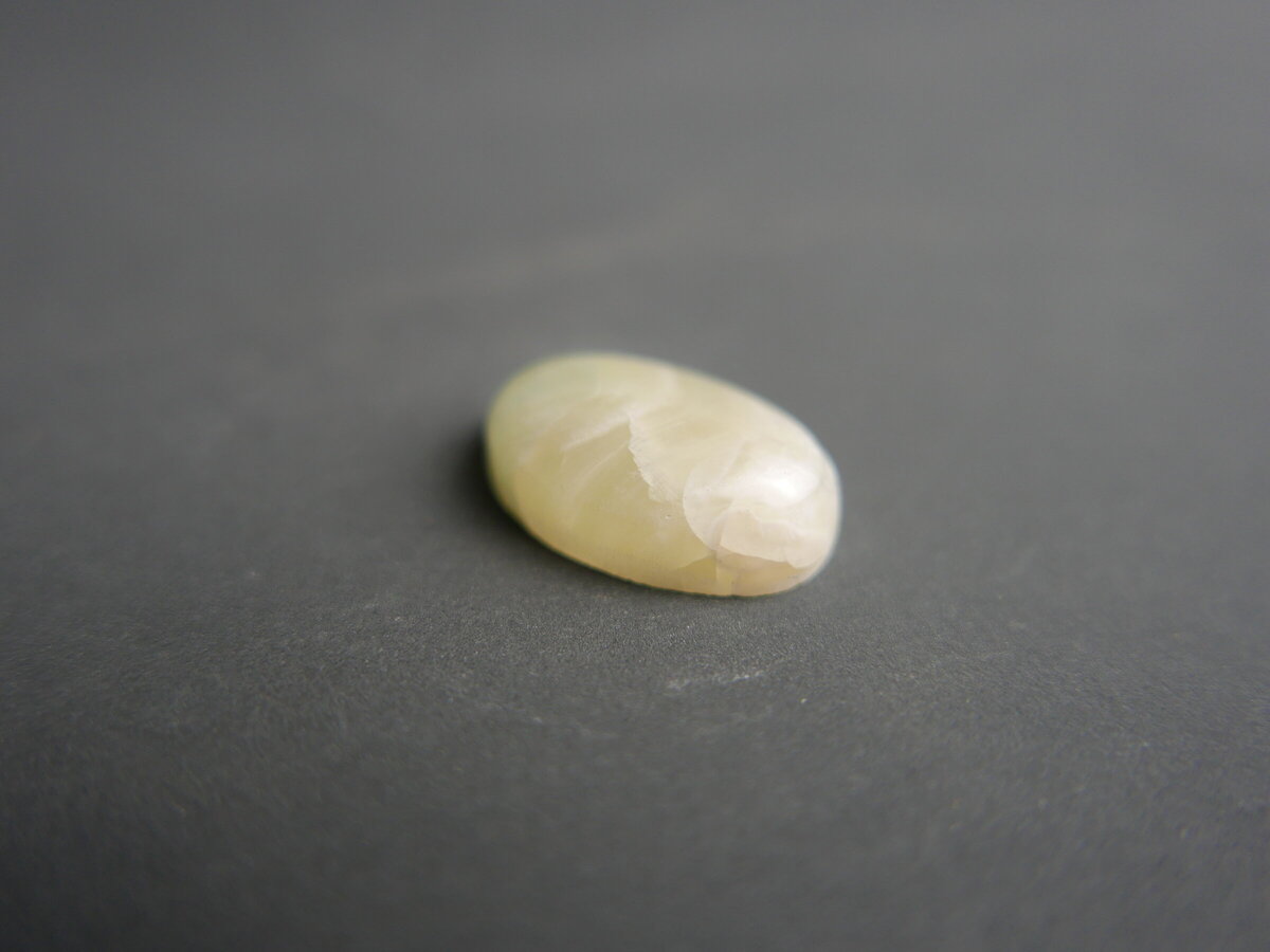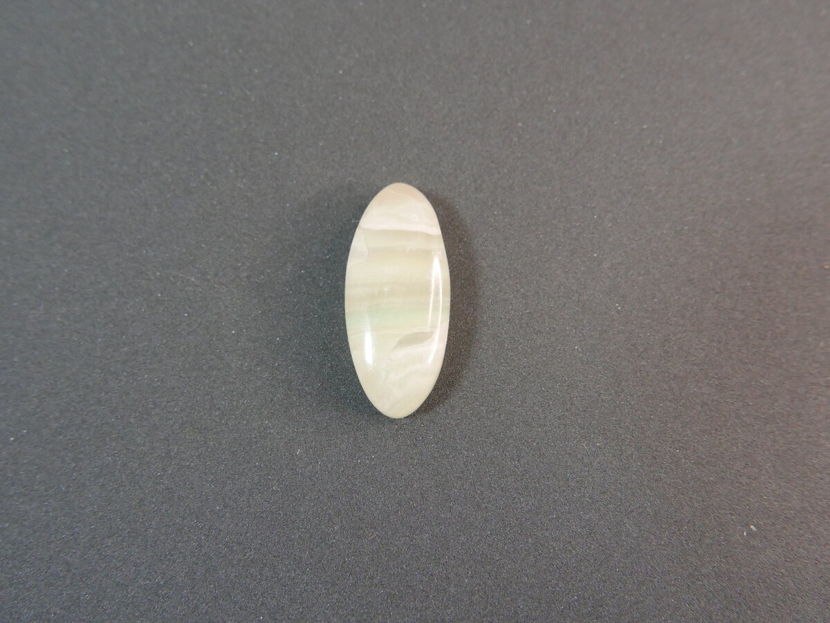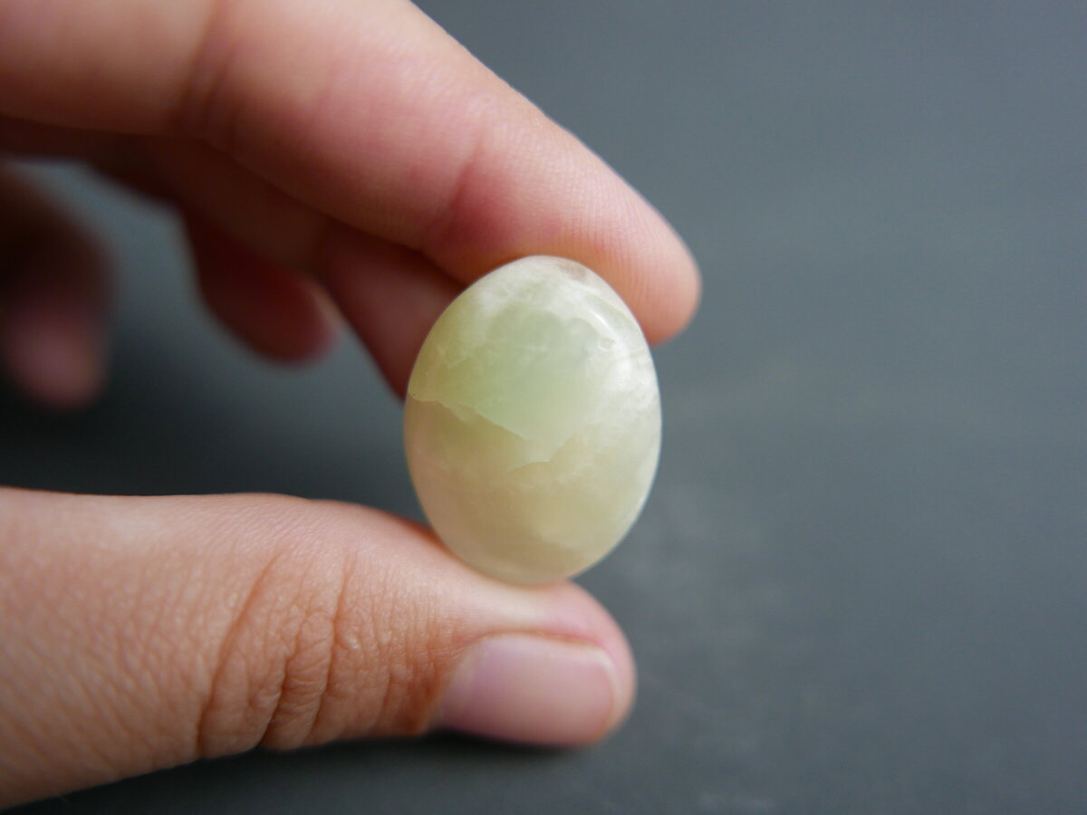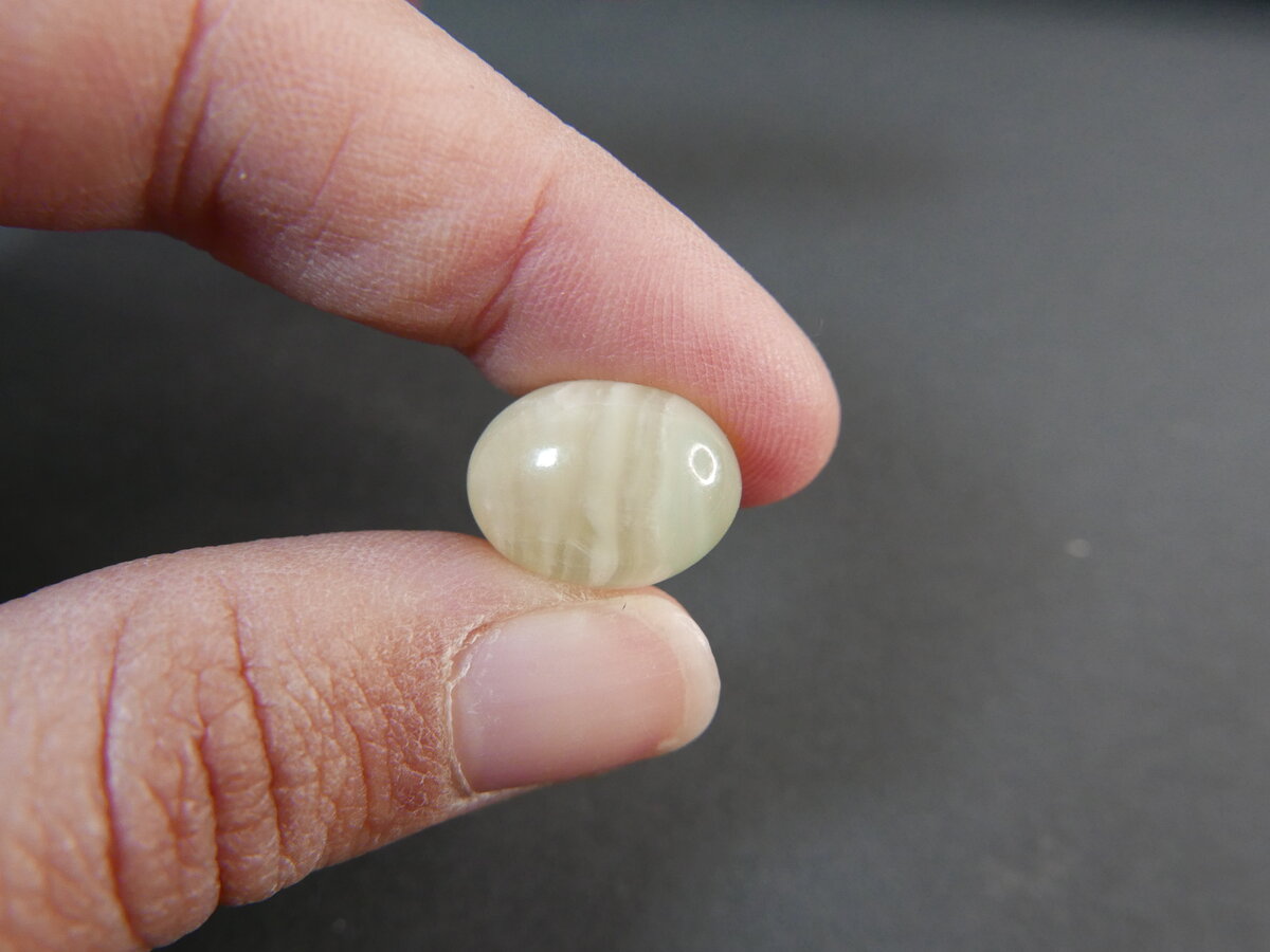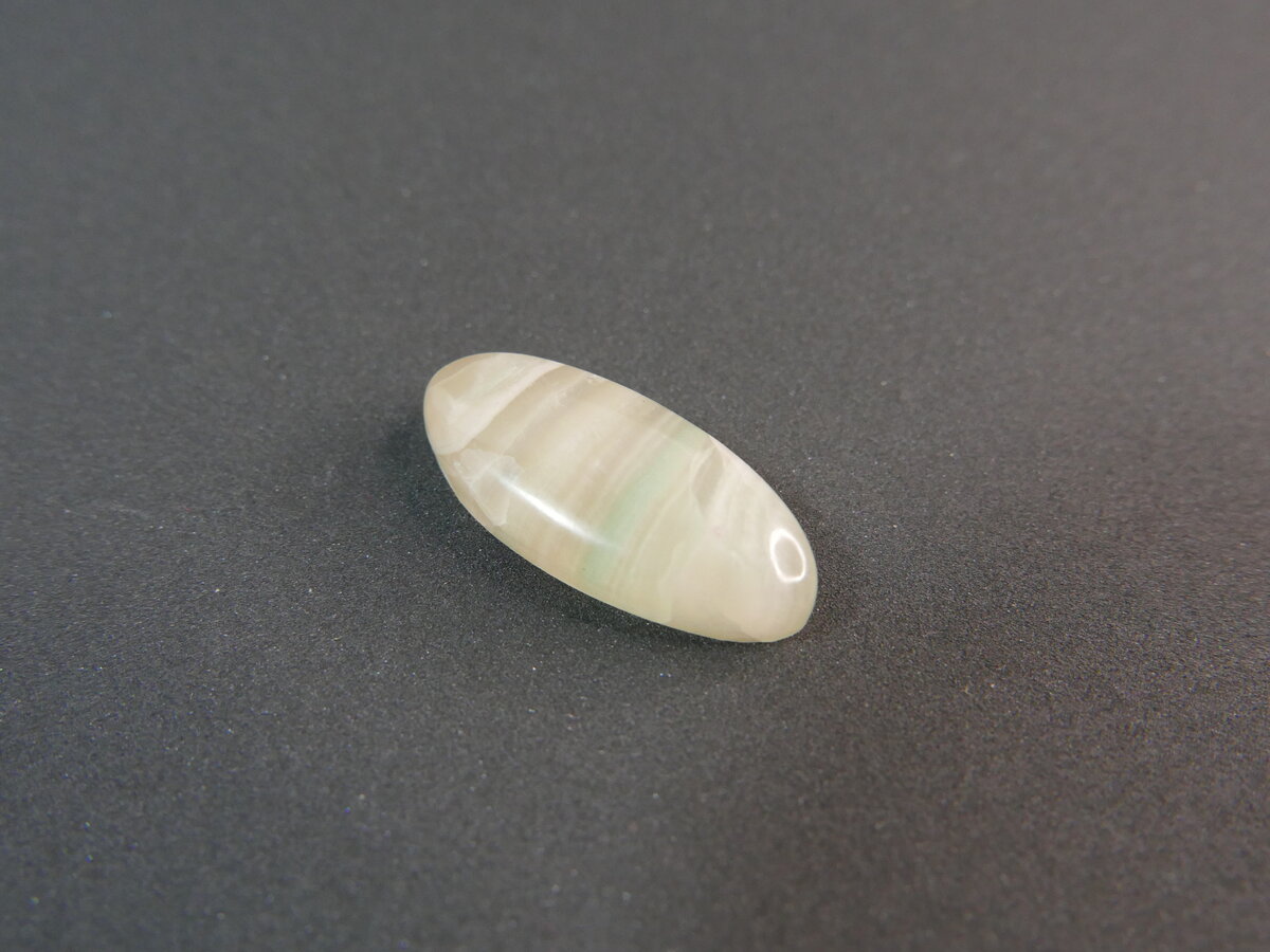 Caboixó de calcita niquelífera de Peramea (Lleida). Fa 29mm x 12,5mm x 6mm.