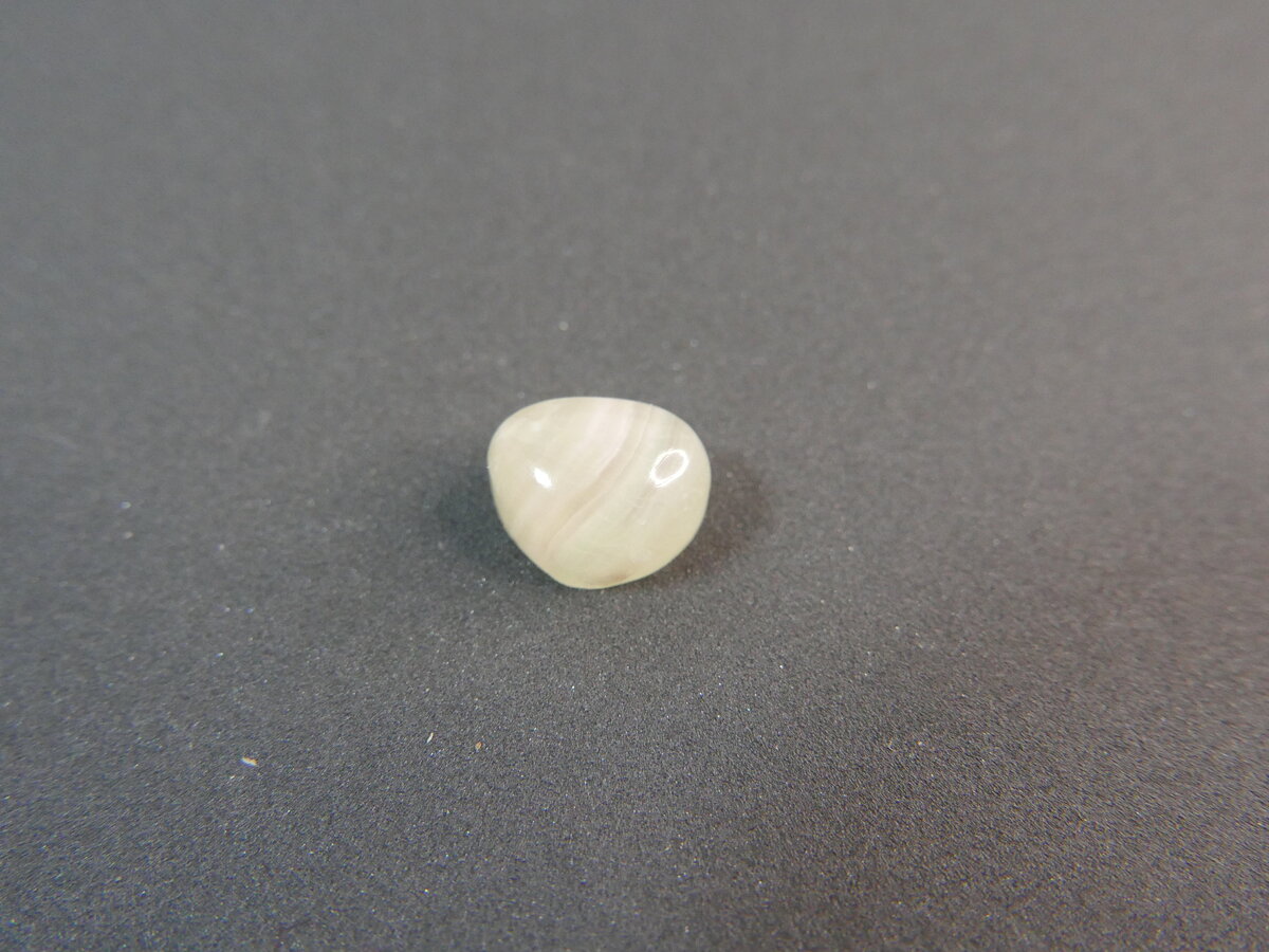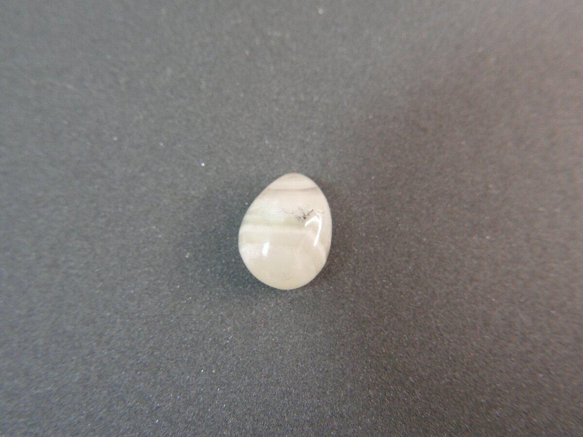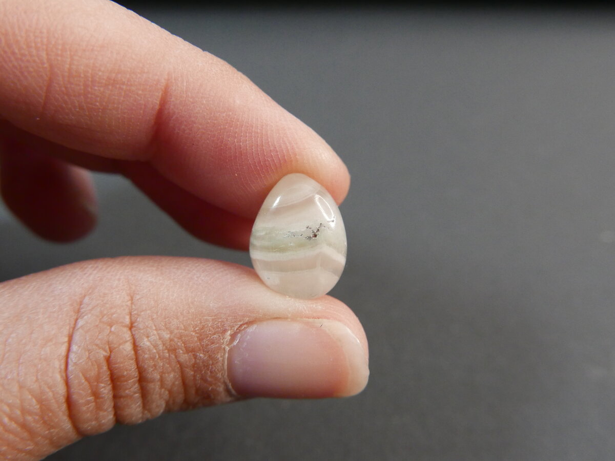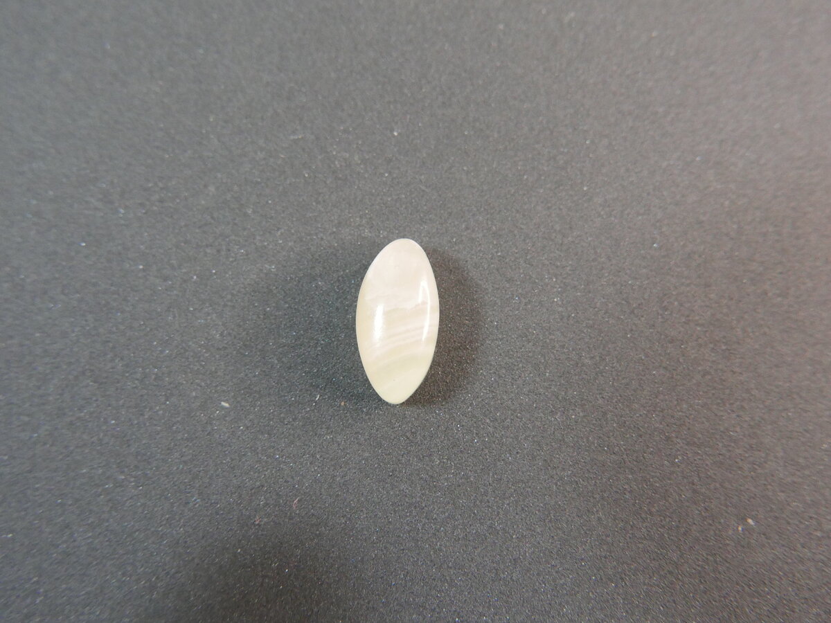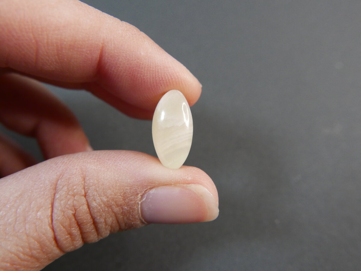 Caboixó de calcita niquelífera de Peramea (Lleida). Fa 29mm x 12,5mm x 6mm.