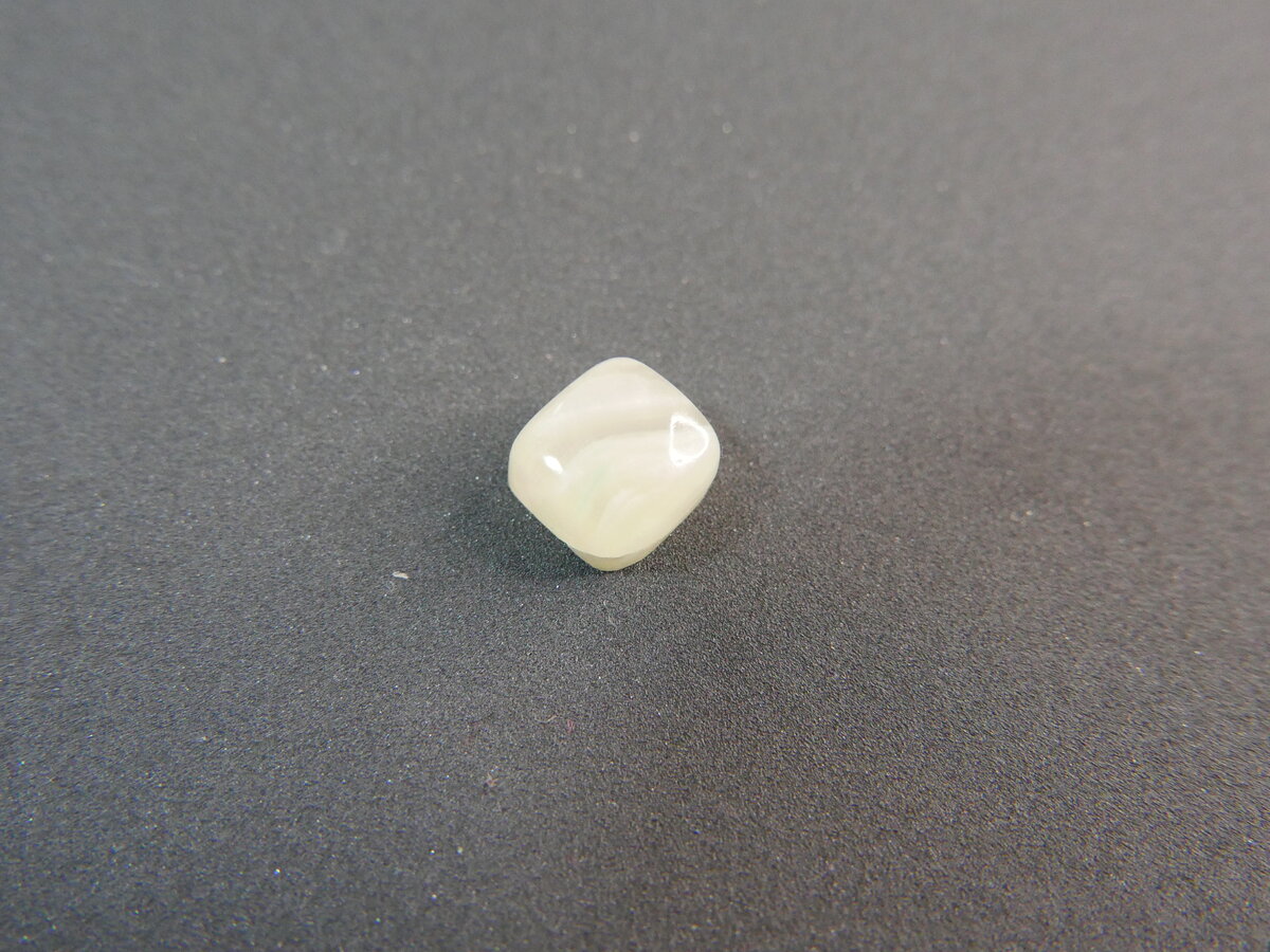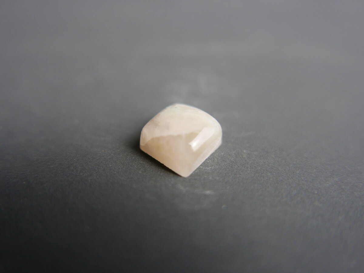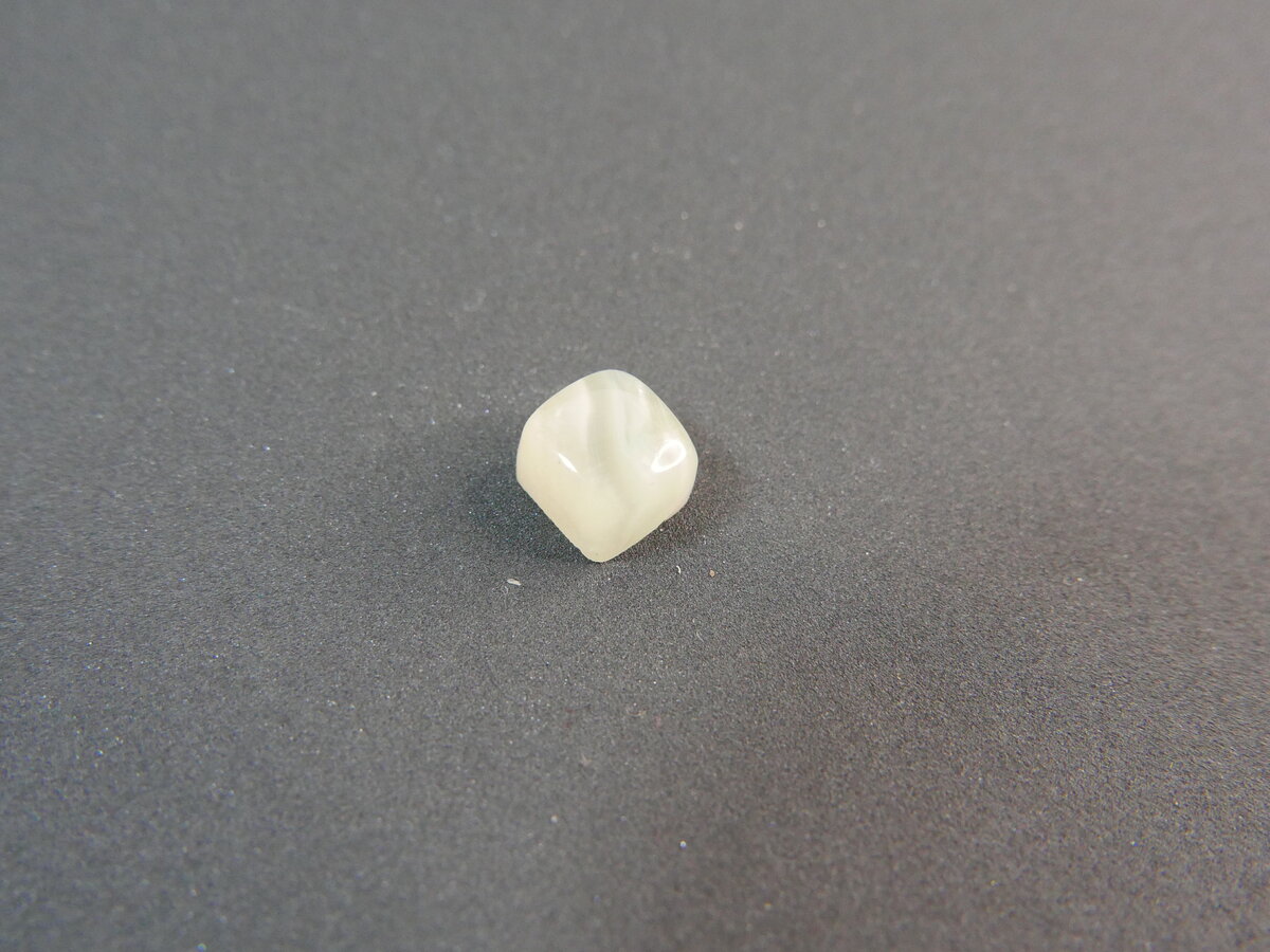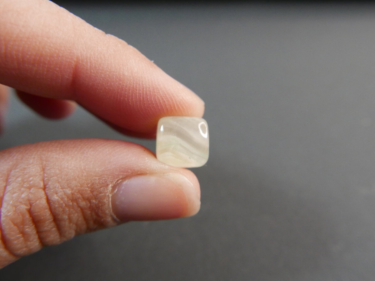 Caboixó de calcita niquelífera de Peramea (Lleida). Fa 9mm x 9mm x 6mm.