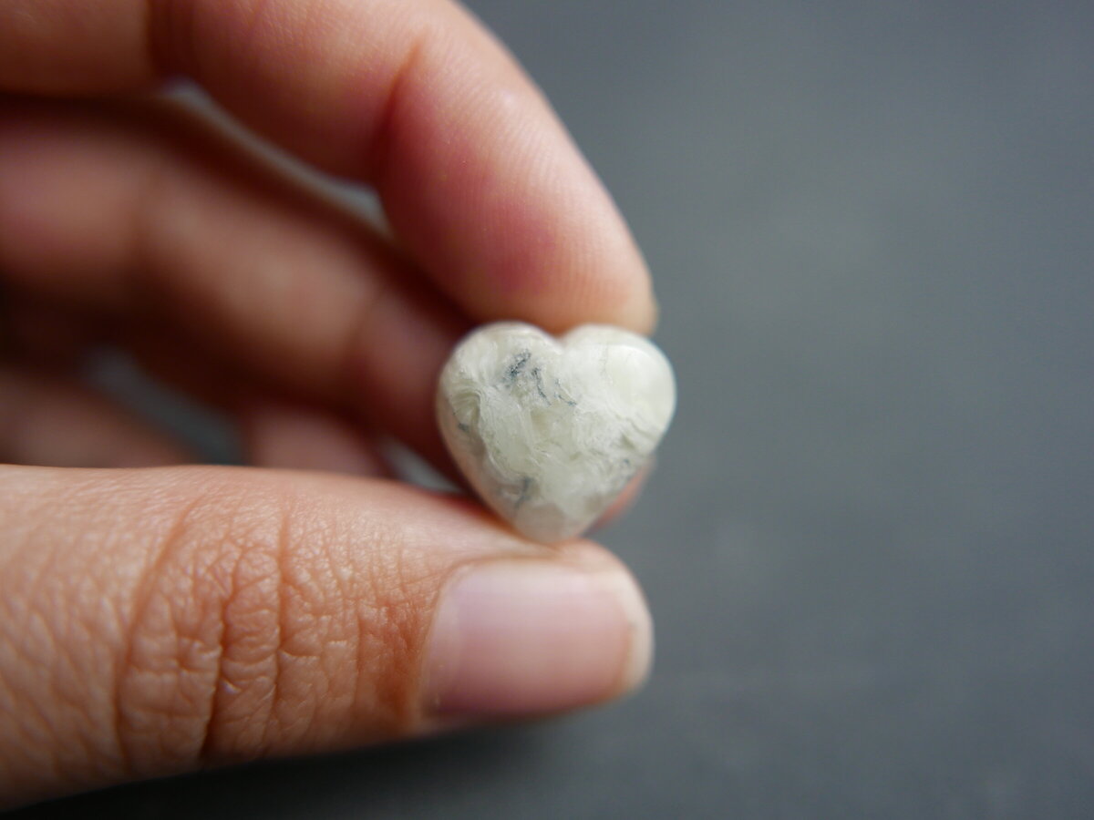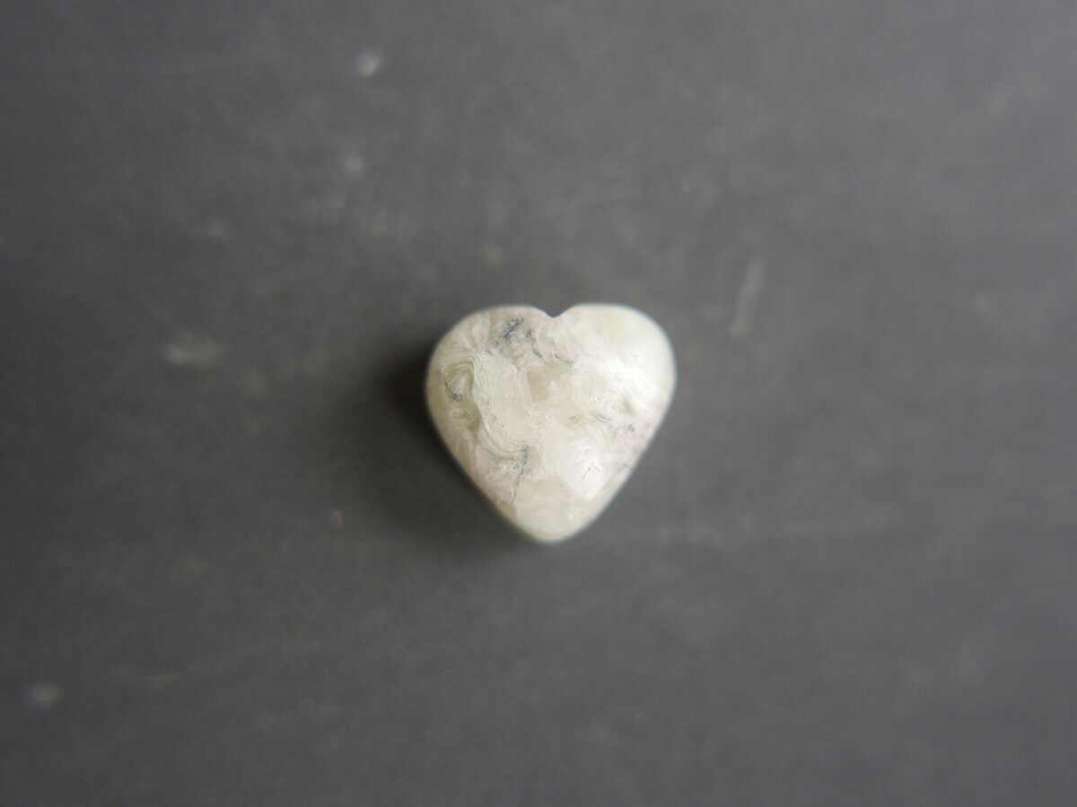 Caboixó en forma de cor de calcita niquelífera (Lleida). Fa 15mm x 15mm x 6,5mm.