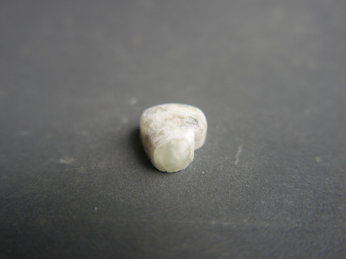 Caboixó de calcita niquelífera de Peramea (Lleida). Fa 16mm x 8mm x 6mm.
