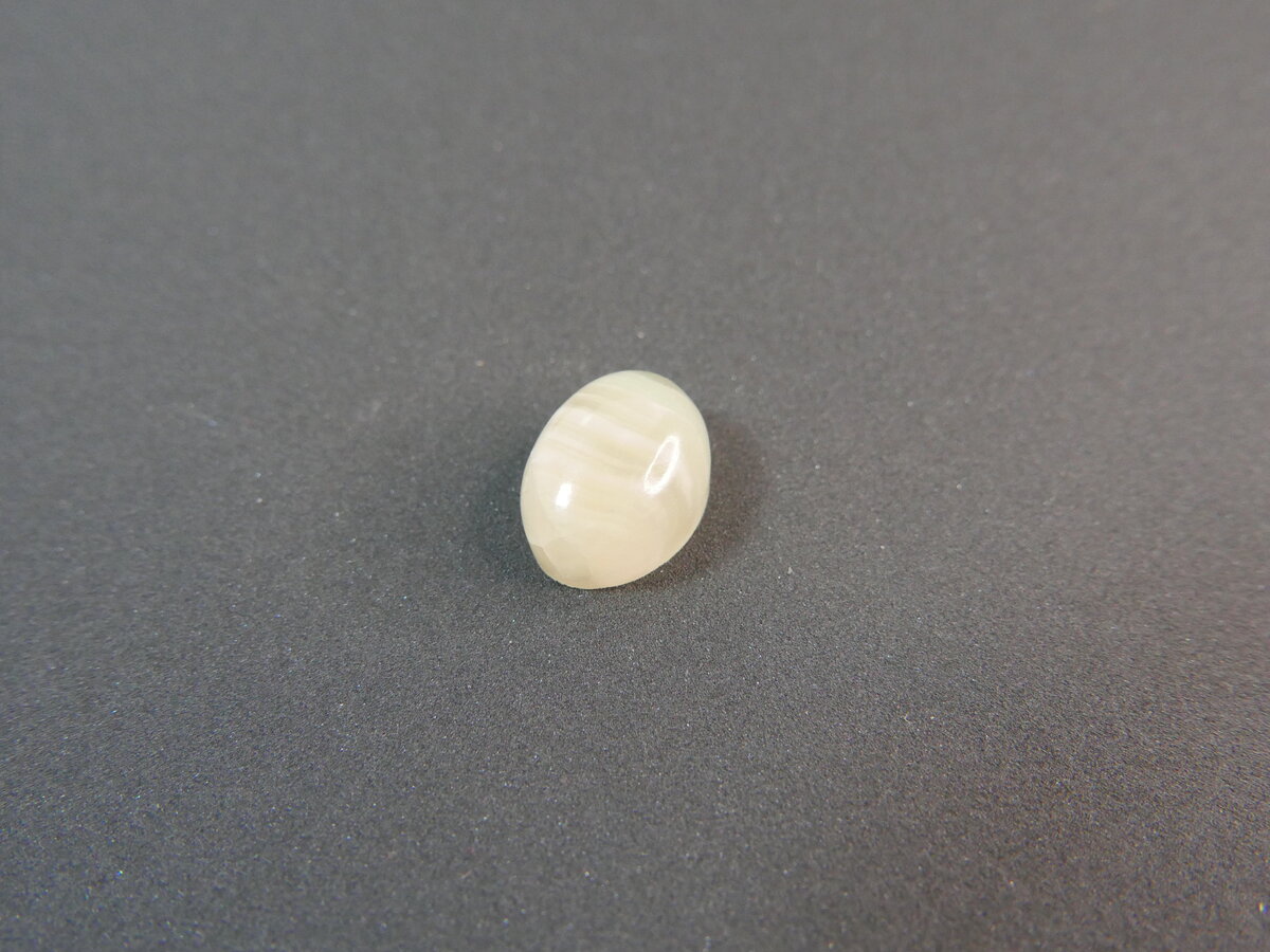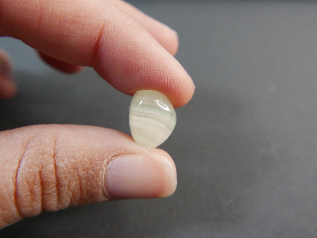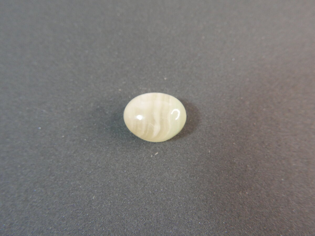 Caboixó de calcita niquelífera de Peramea (Lleida). Fa 13mm x 10mm x 6mm.