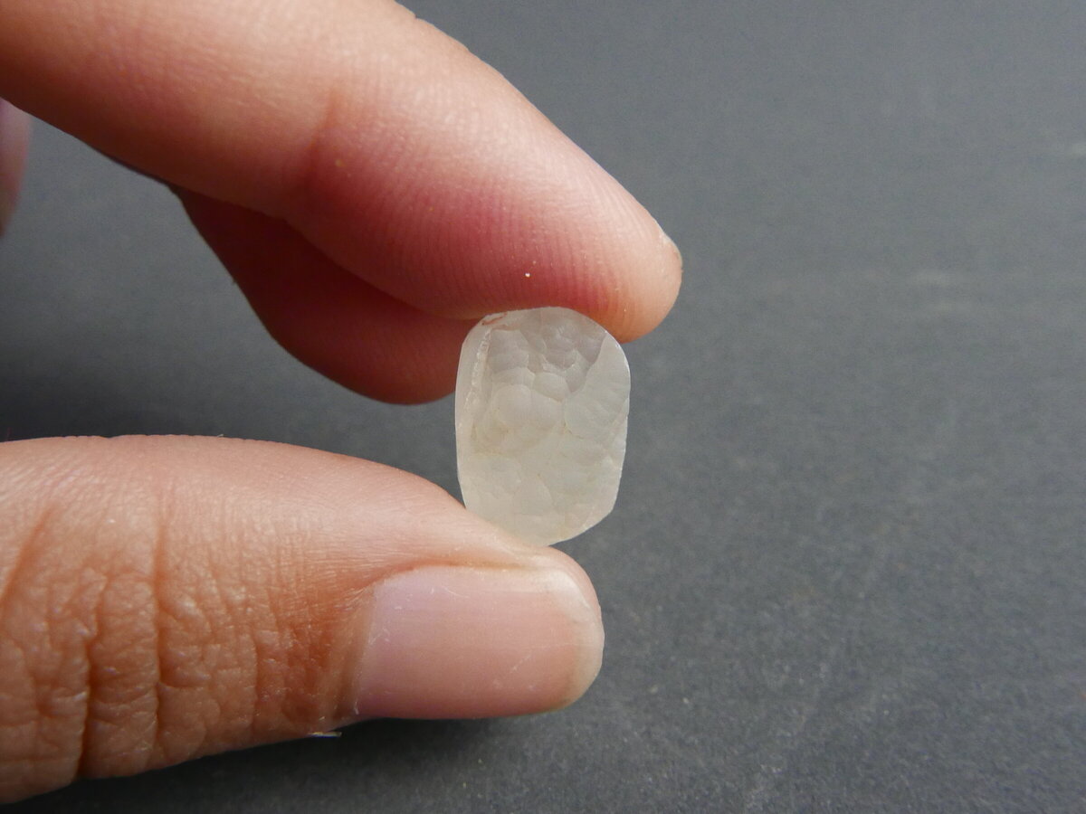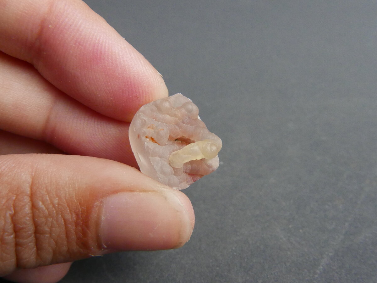 Drusa de calcedònia de Montjuïc (Barcelona). Fa 15mm x 12mm x 6mm.