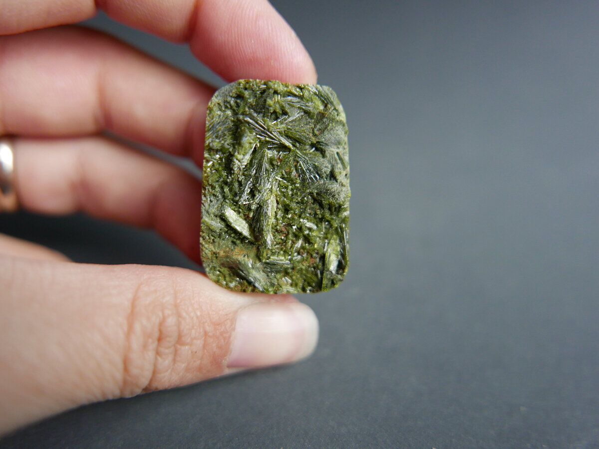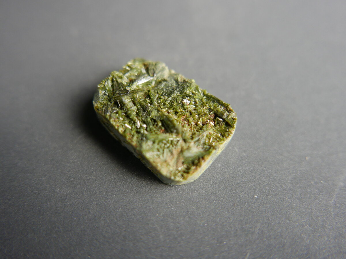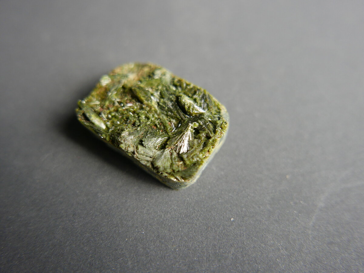 Drusa amb cristalls d'epidota del Pallars (Lleida). Fa 32mm x 22mm x 7mm.