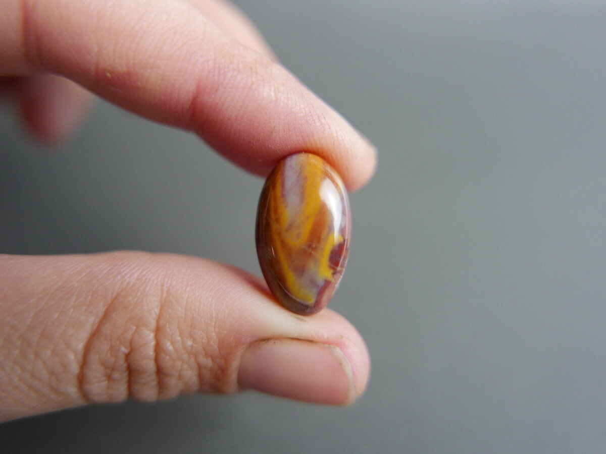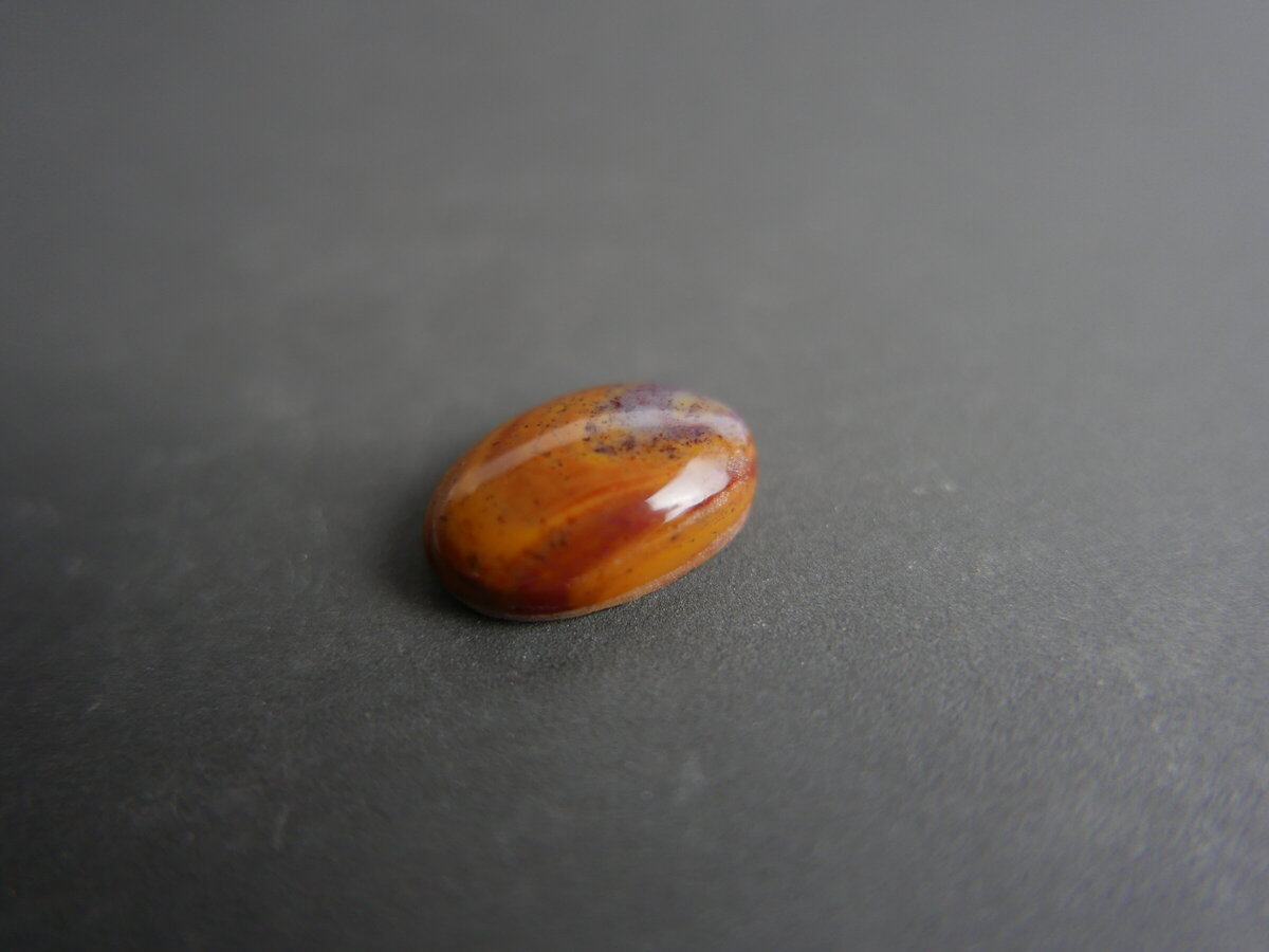 Caboixó de jaspi de Montjuïc, Barcelona. Fa 19mm x 13mm x 6mm.