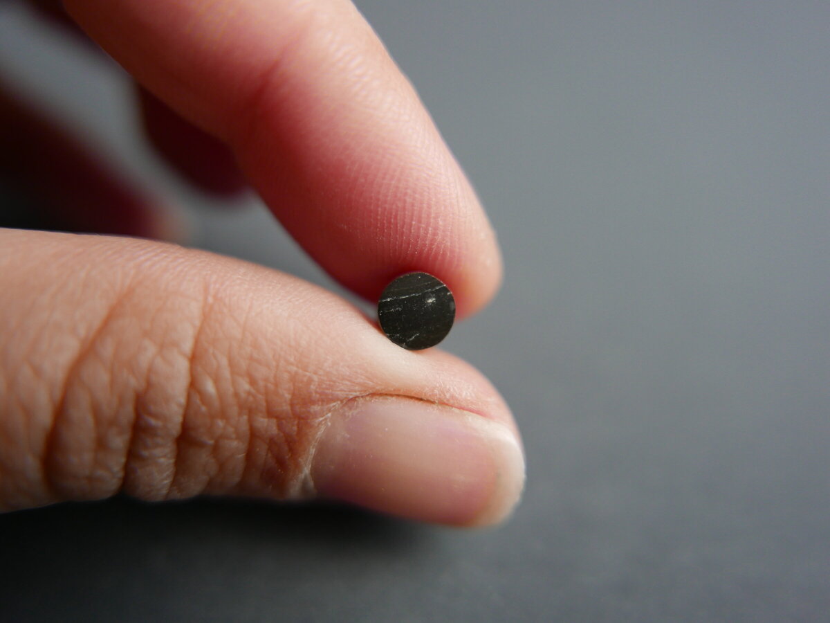 Làmina de pedra de la Cerdanya (Lleida). Fa 12mm x 12mm x 4mm.