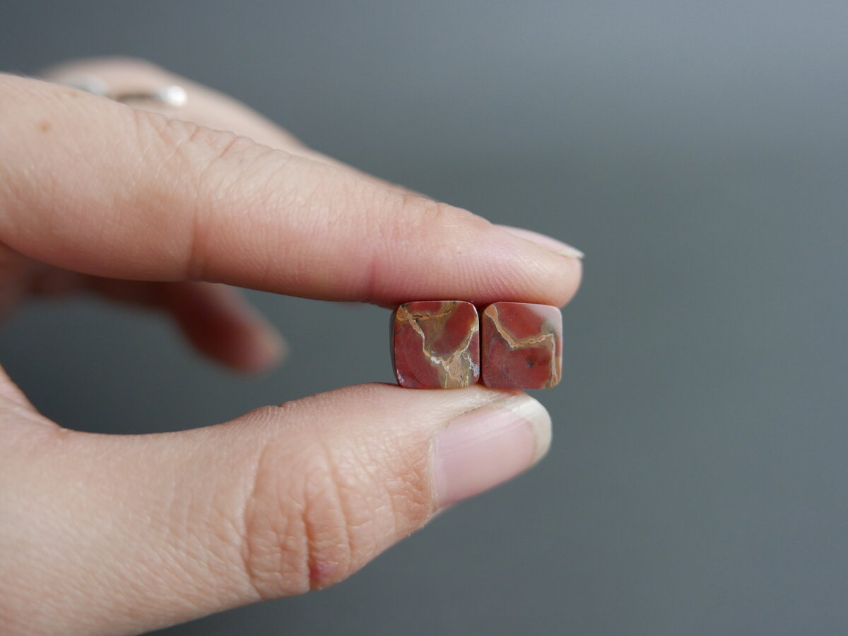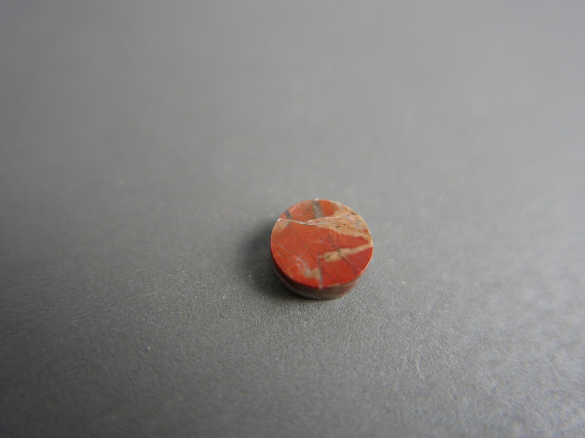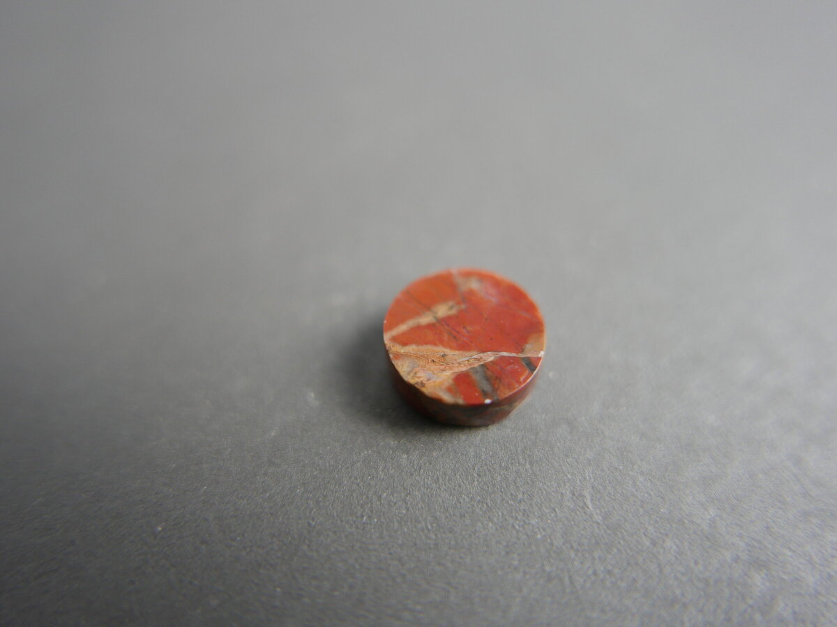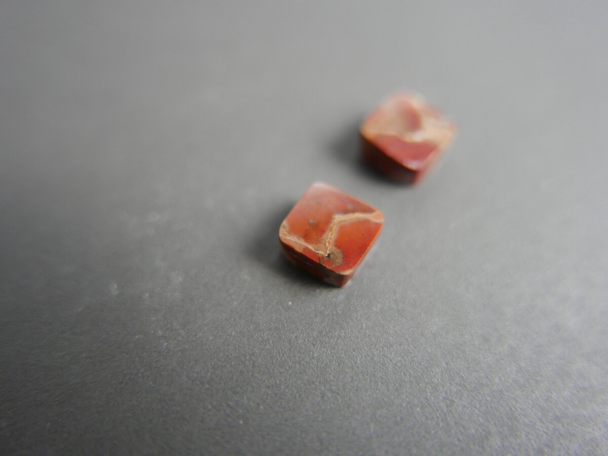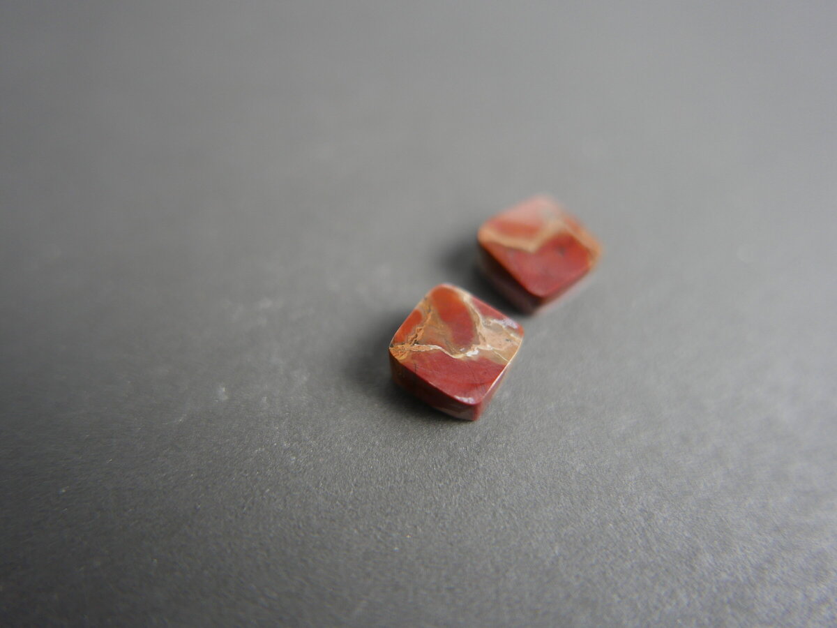 Làmina de jaspi de Tortosa (Tarragona). Fa 8,5mm x 8,5mm x 5mm.