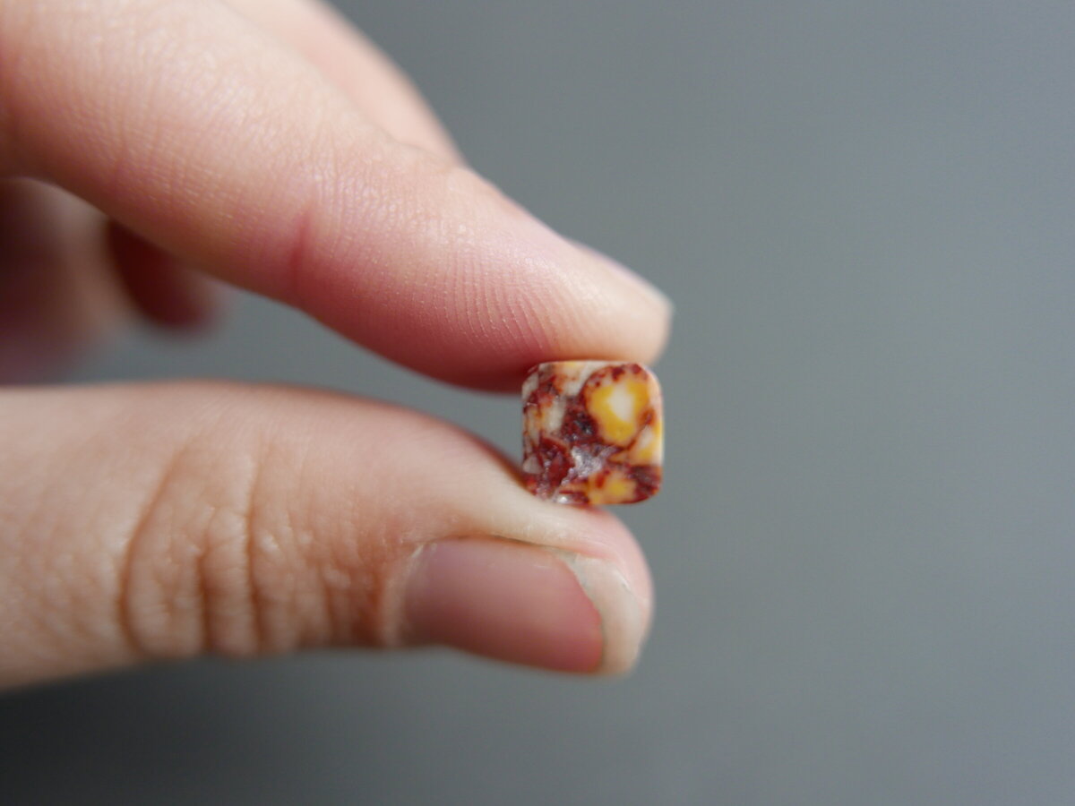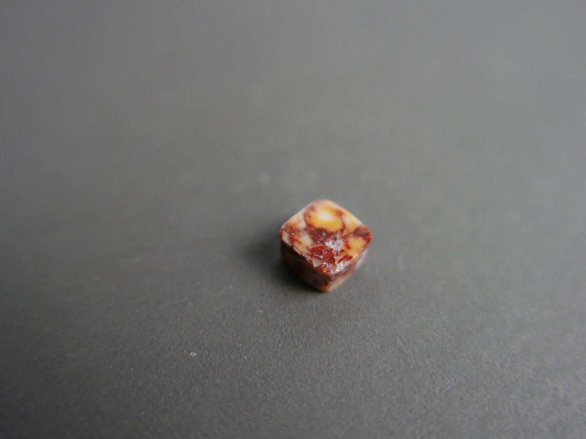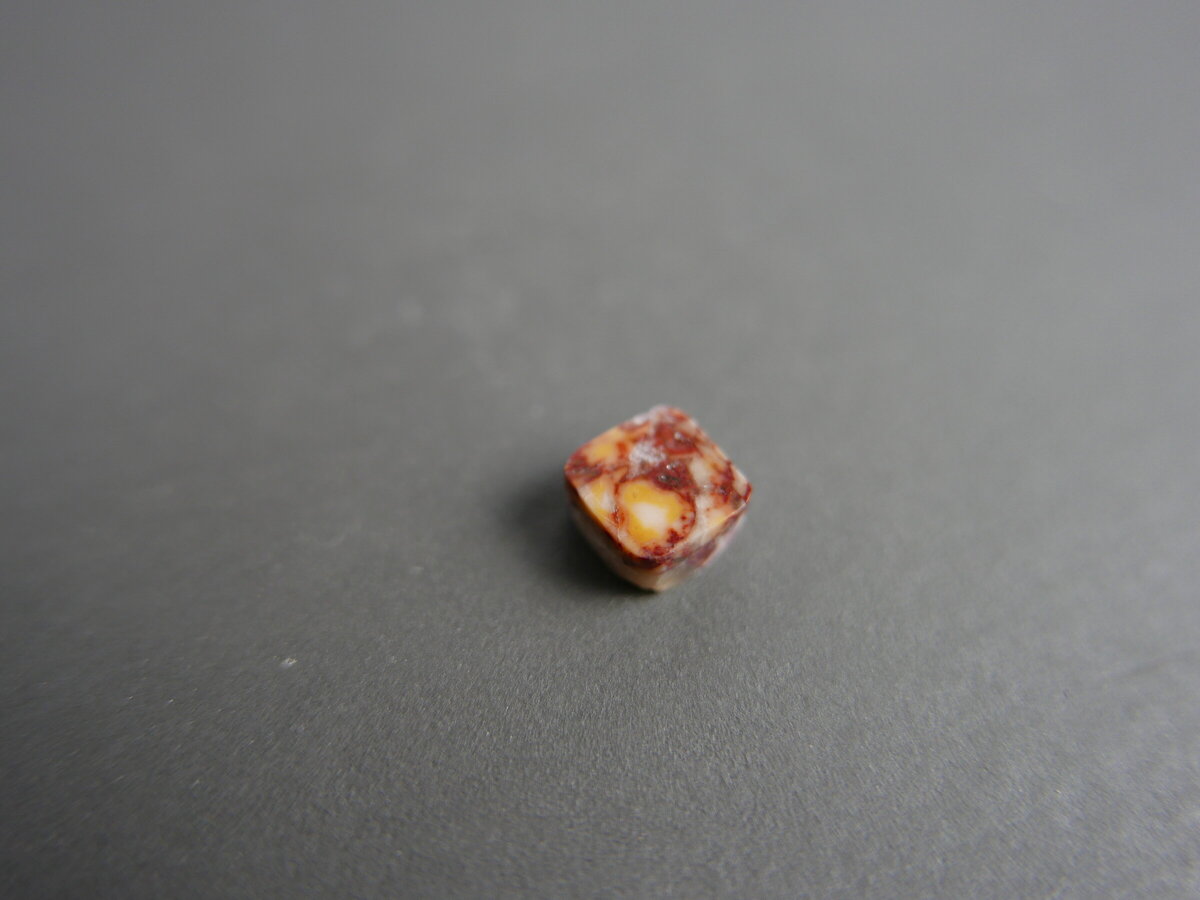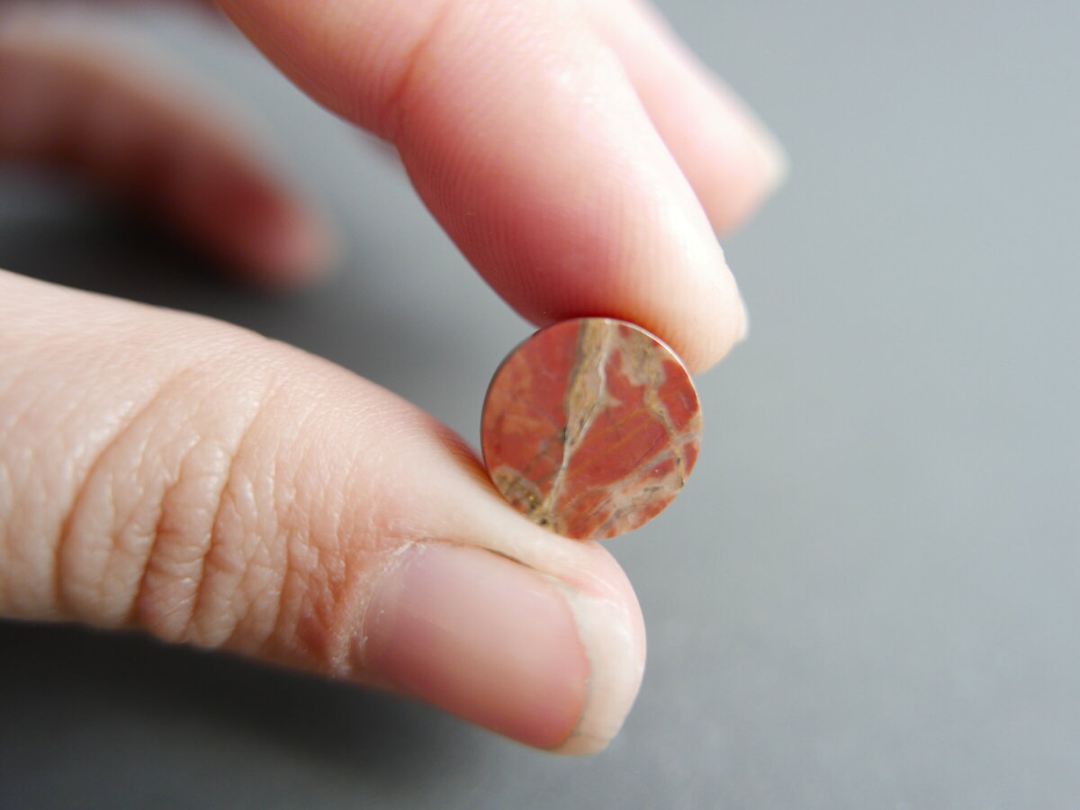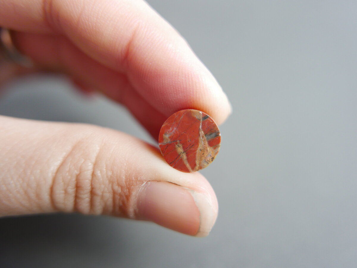 Làmina de jaspi de Tortosa (Tarragona). Fa 8,5mm x 8,5mm x 5mm.