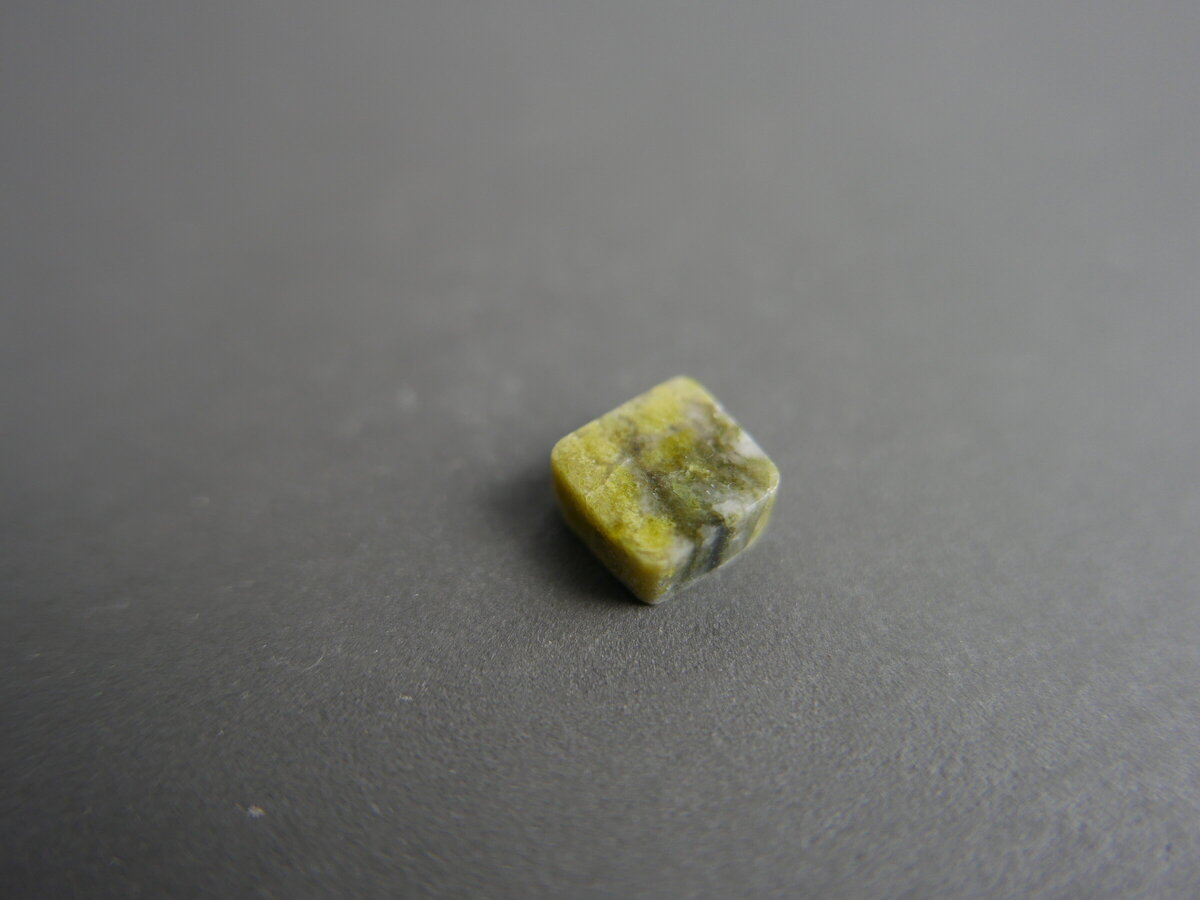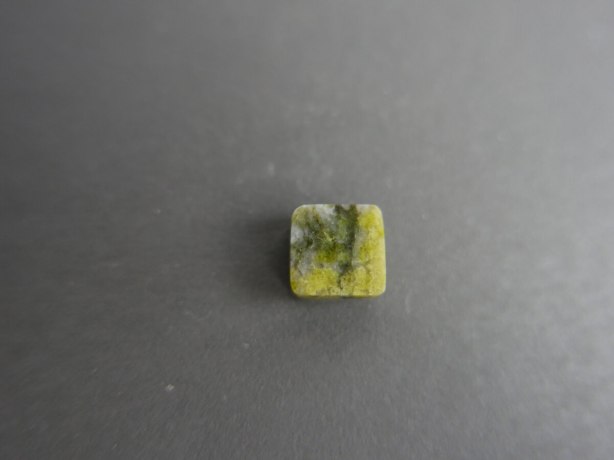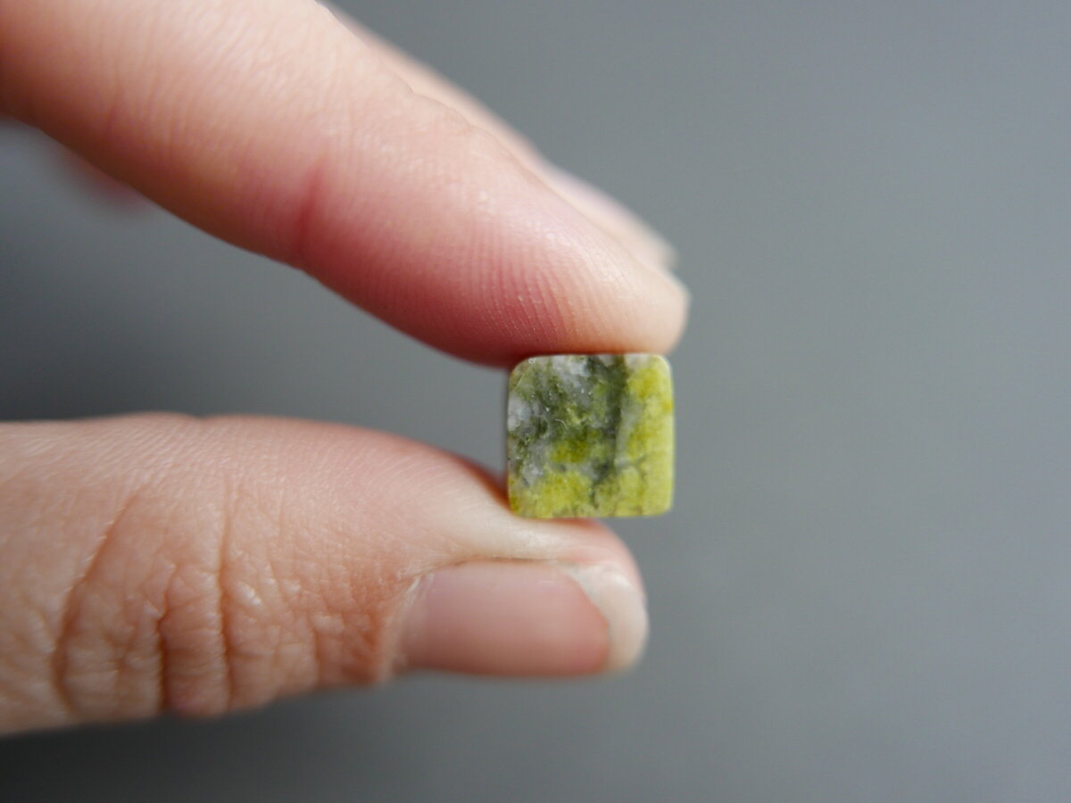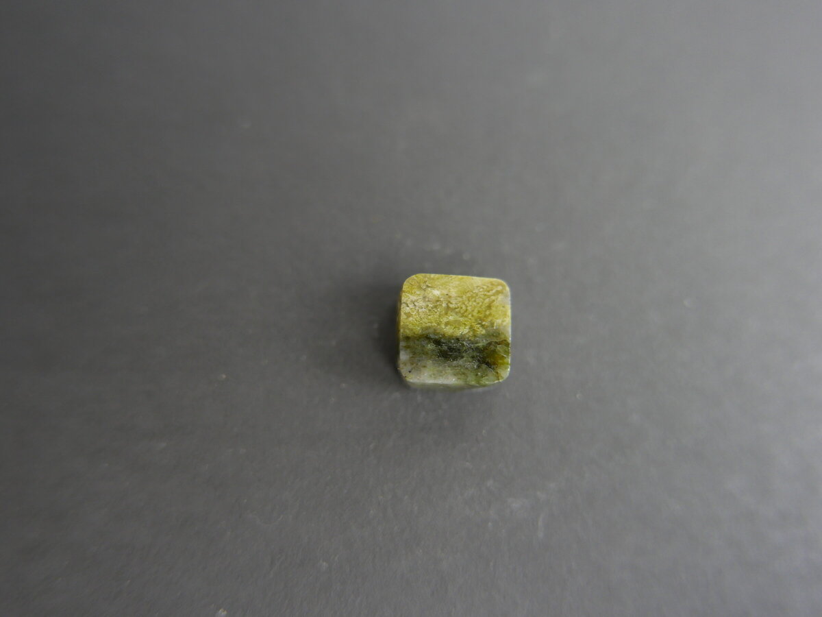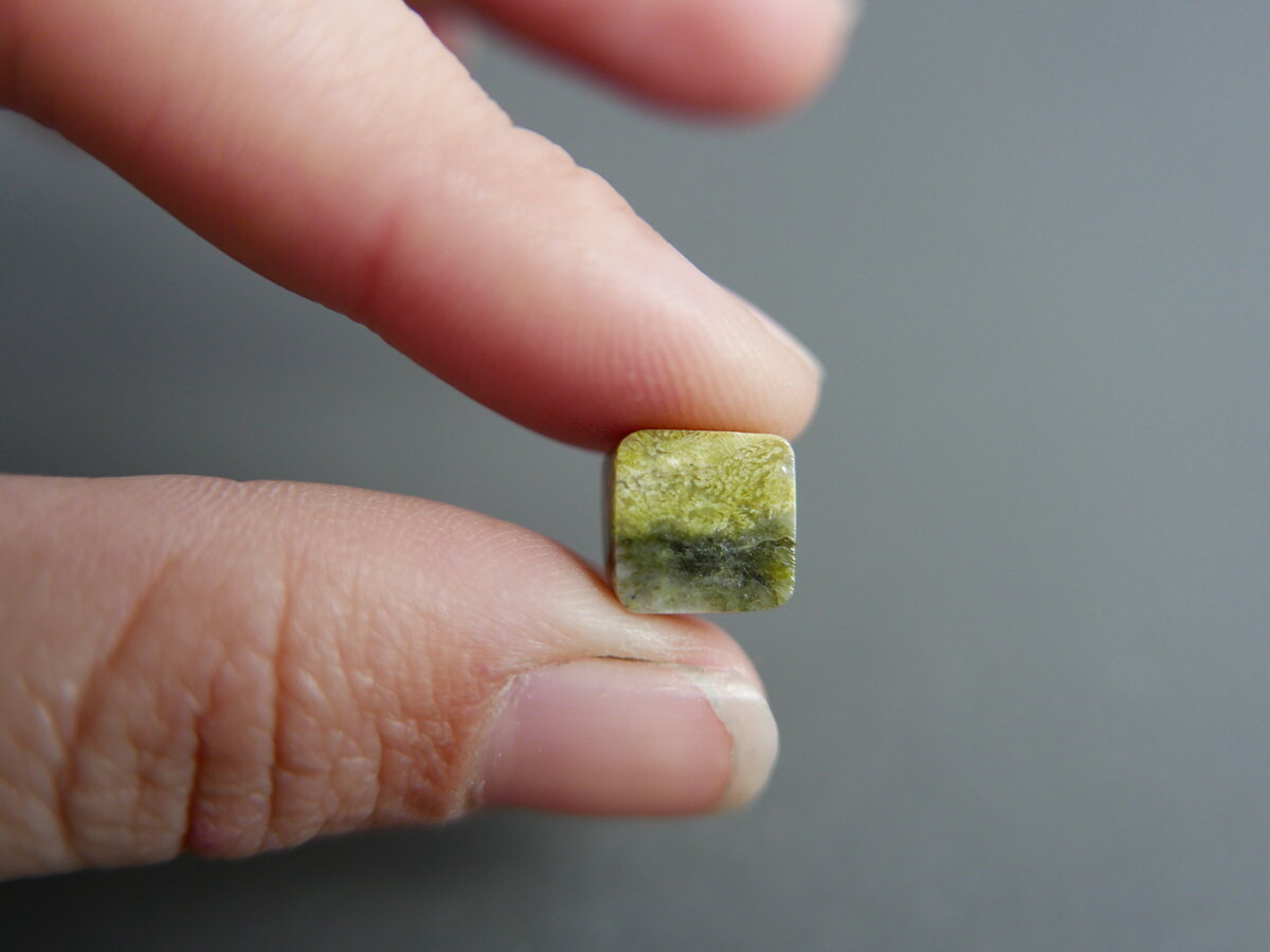 Làmina de serpentina del Ripollès (Girona). Fa 9mm x 9mm x 5mm.