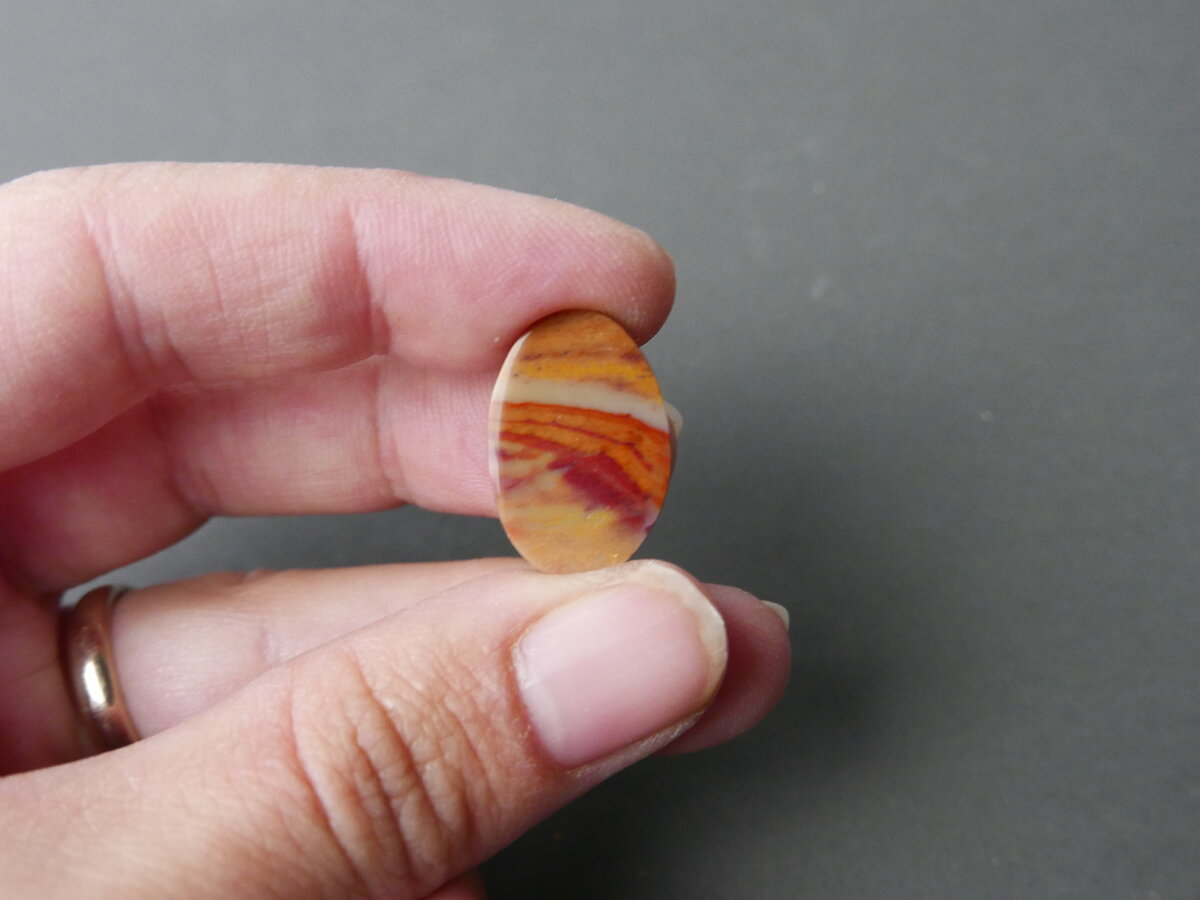 Caboixó de jaspi de Montjuïc, Barcelona. Fa 19mm x 13mm x 3mm.