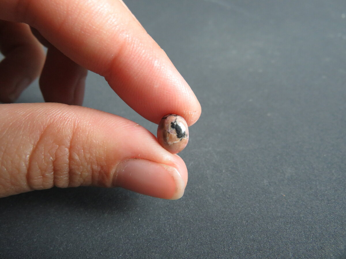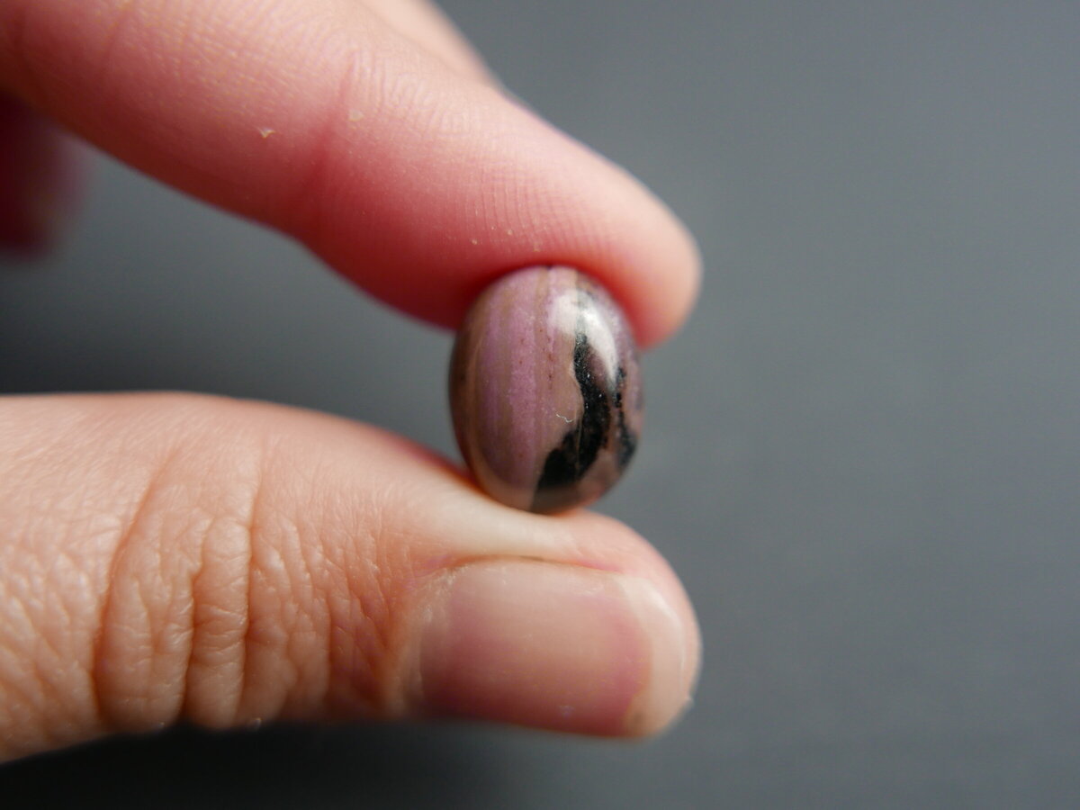 Caboixó de rodonita del Priorat, Tarragona. Fa 8,5mm x 7mm x 4,5mm.