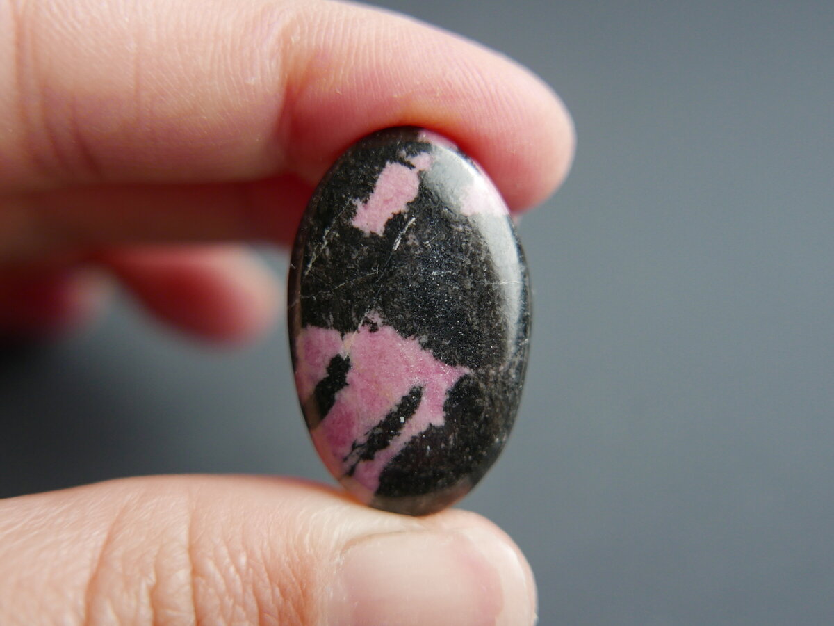 Caboixó de rodonita del Priorat, Tarragona. Fa 23mm x 17mm x 6mm.