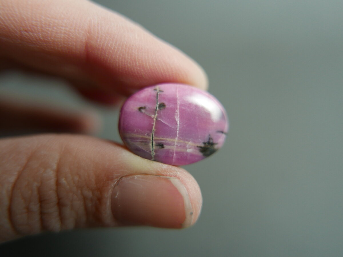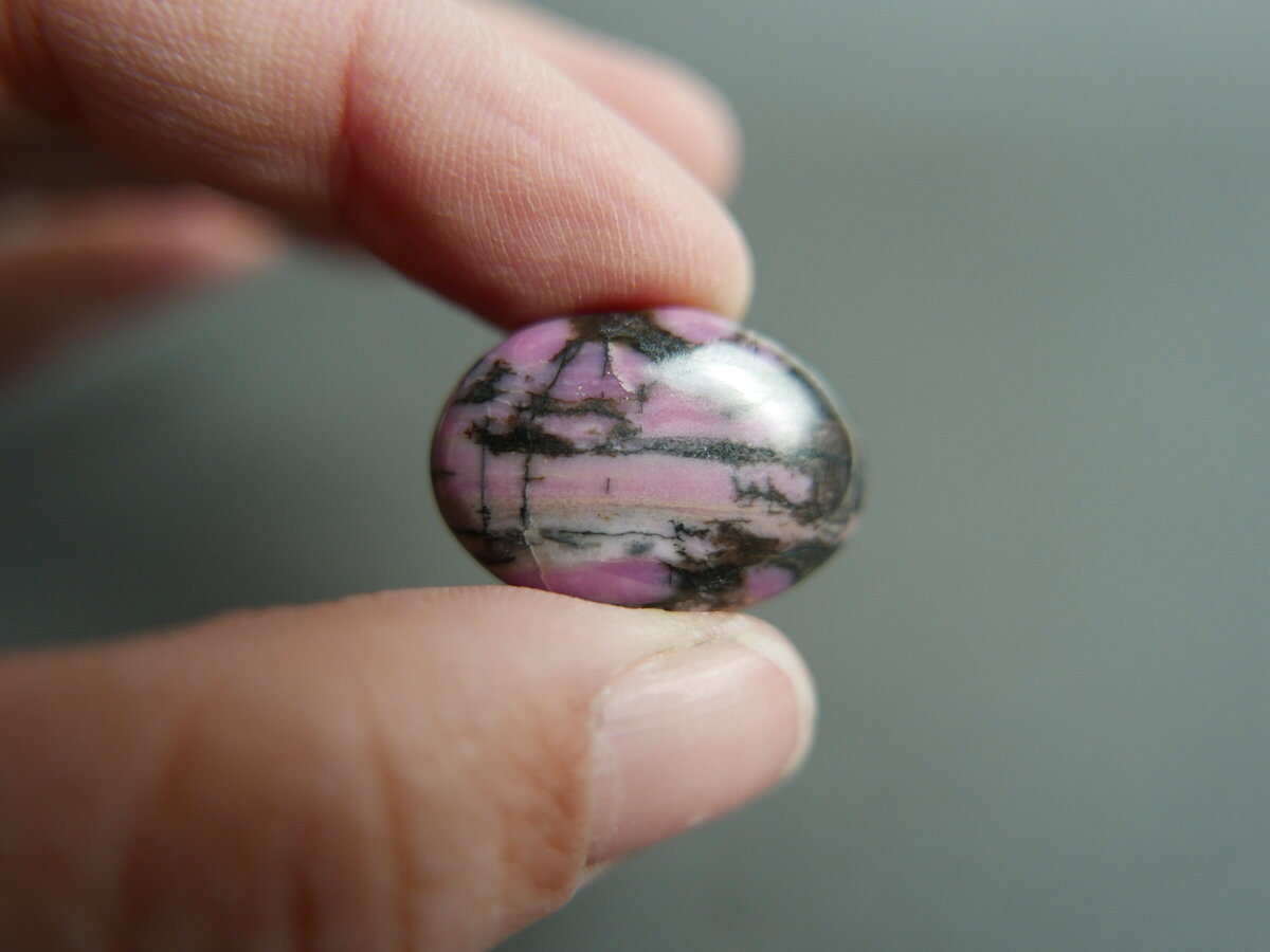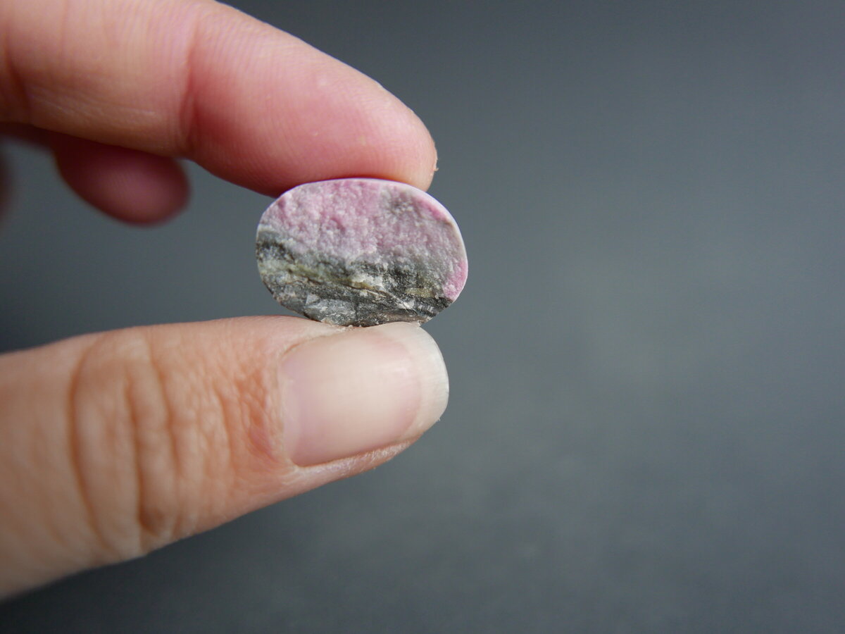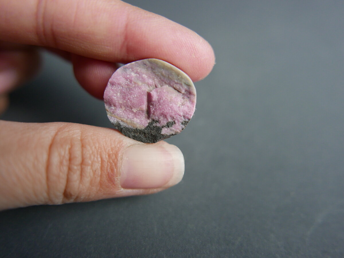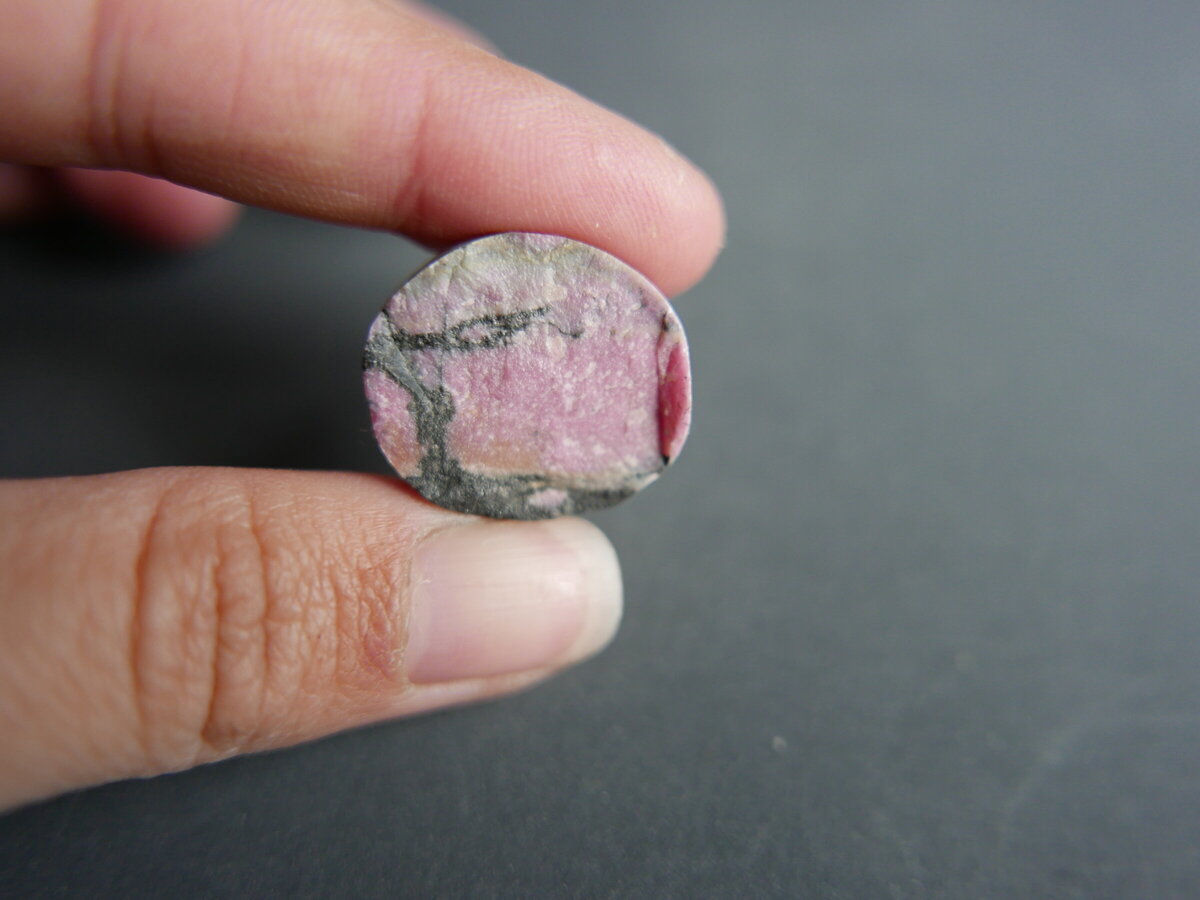 Caboixó de rodonita del Priorat, Tarragona. Fa 18mm x 13mm x 5,5mm.