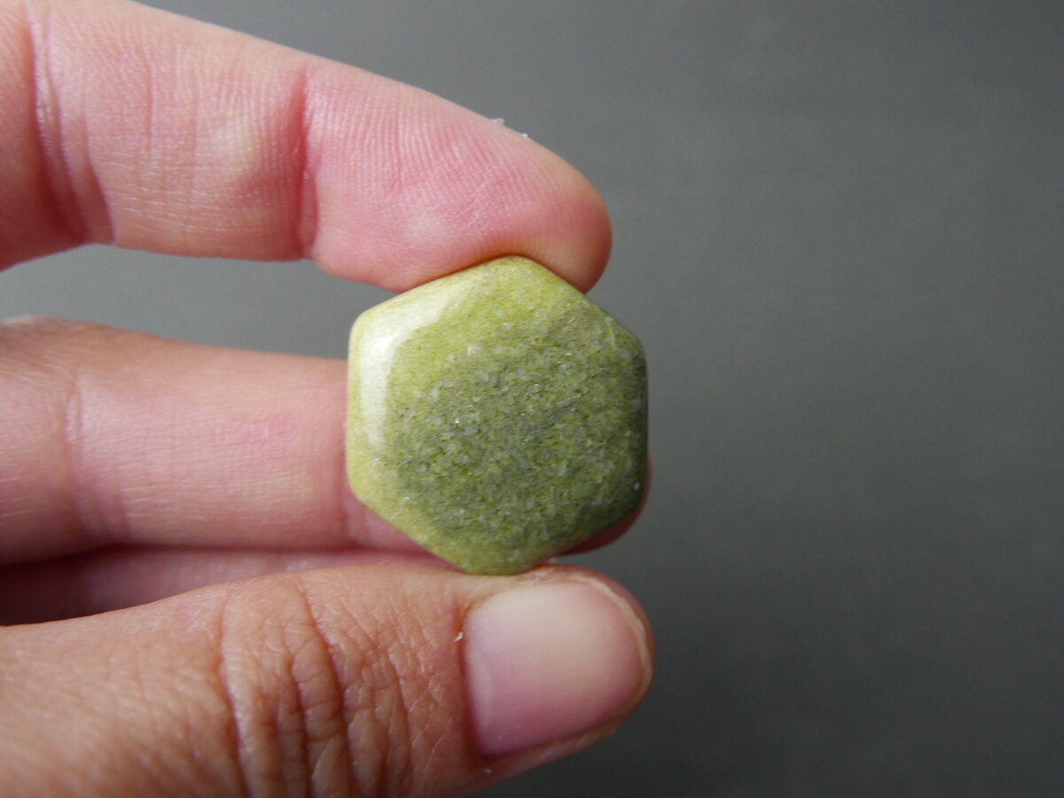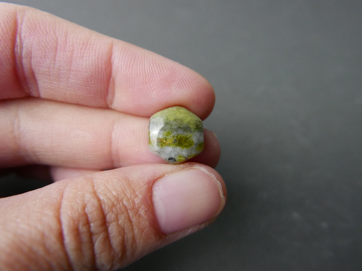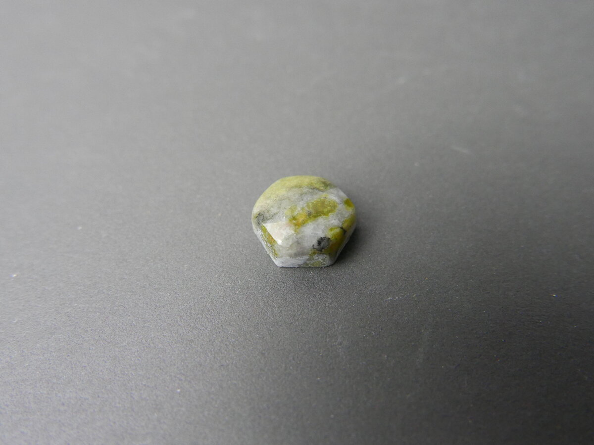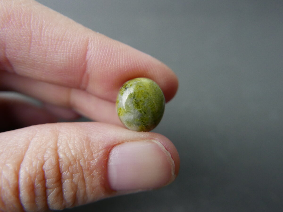 Caboixó de serpentina del Ripollès, Girona. Fa 9,5mm x 10mm x 5mm.