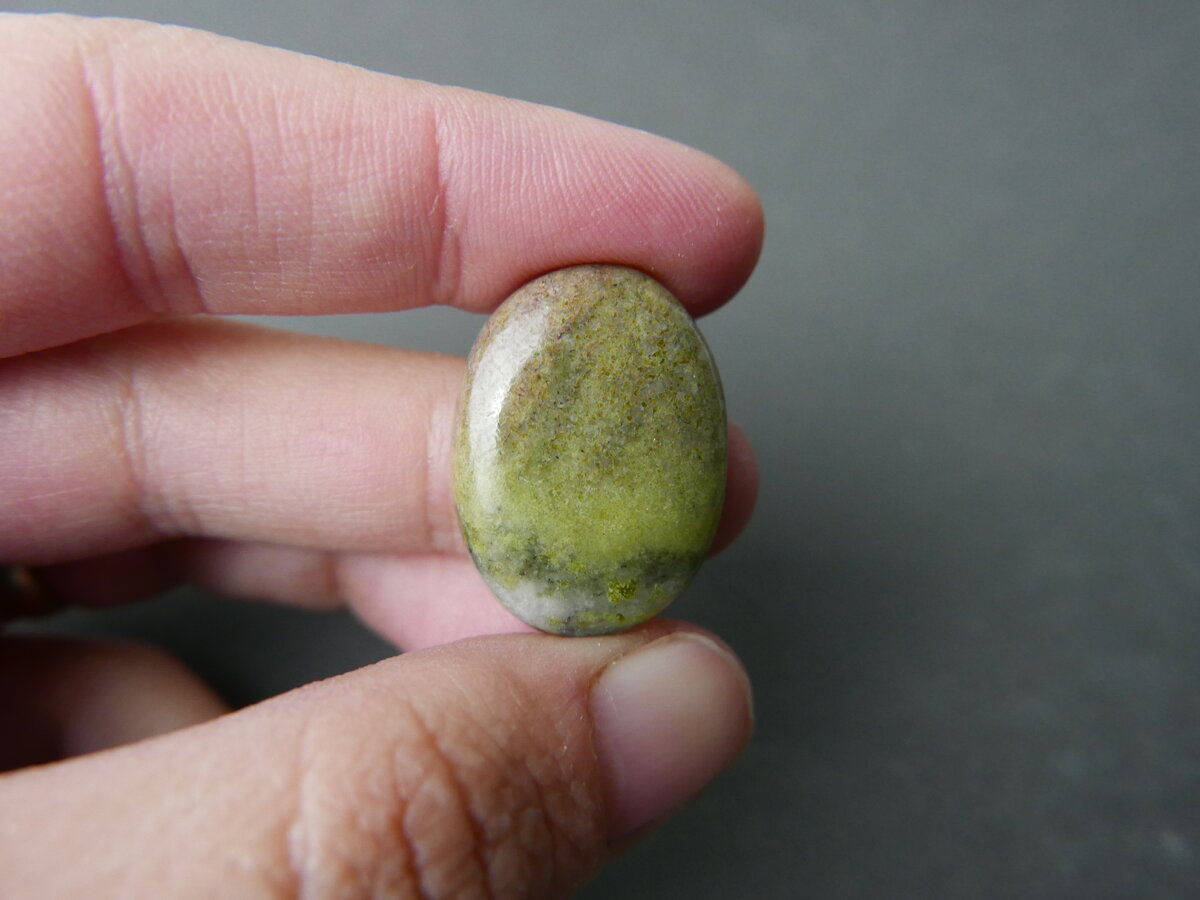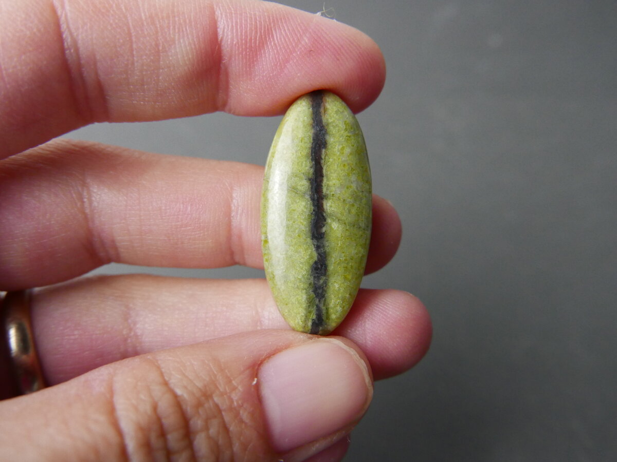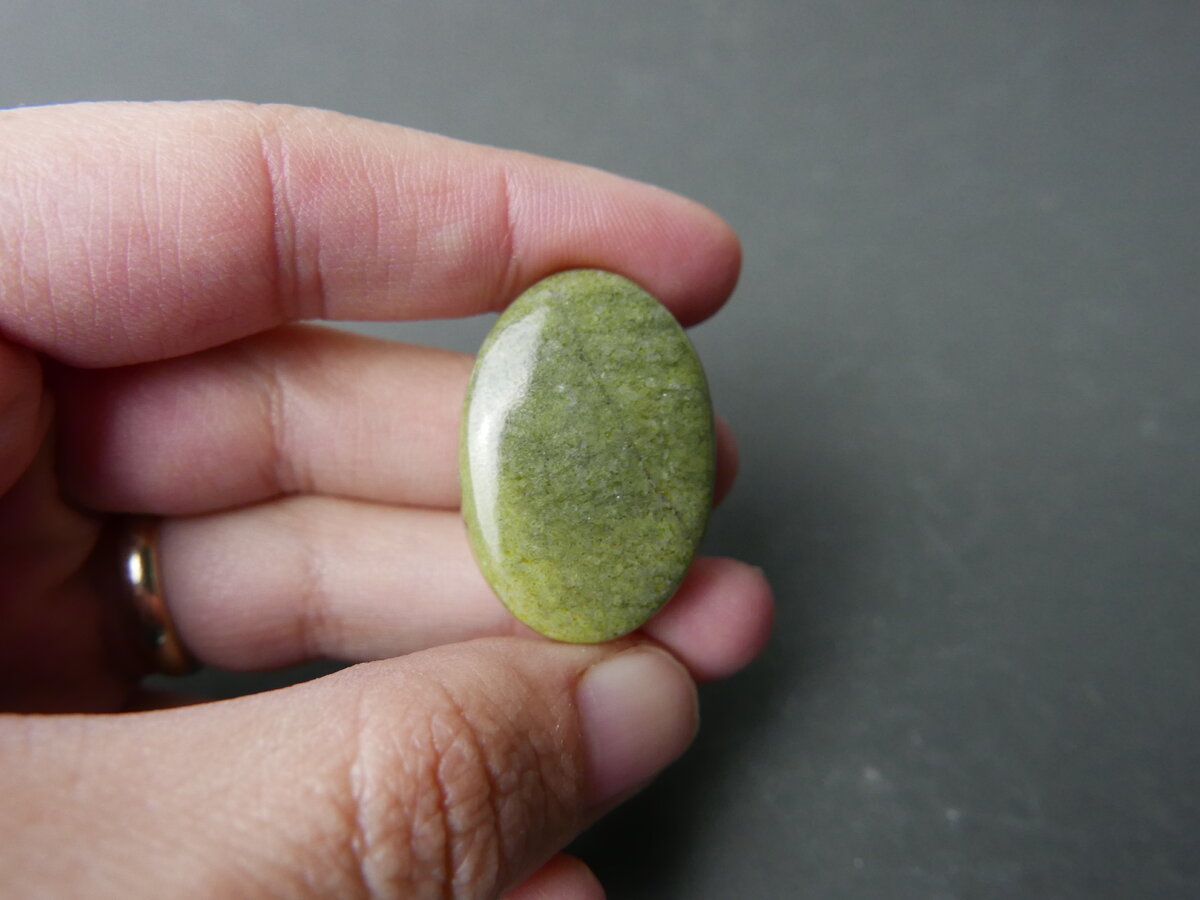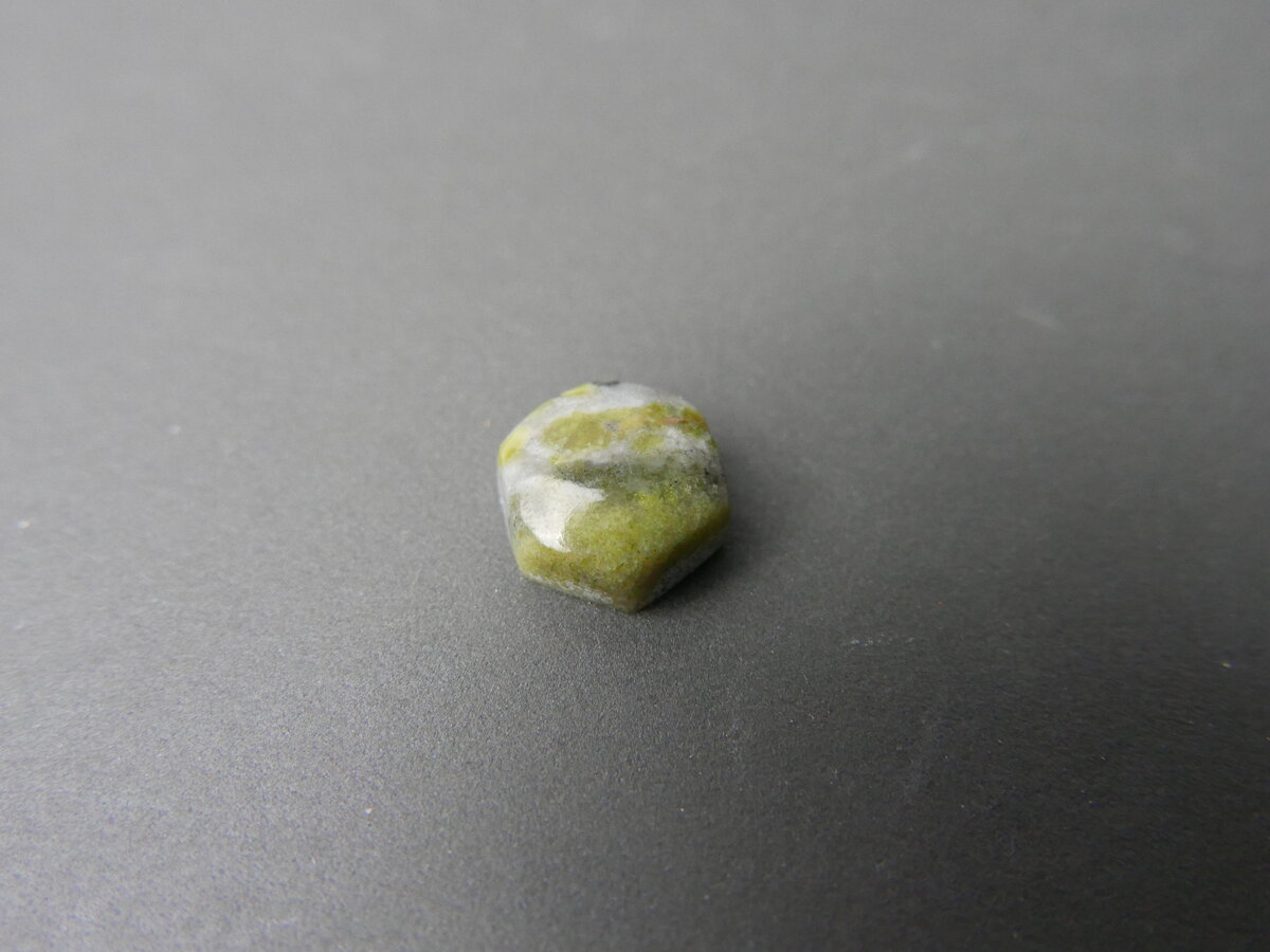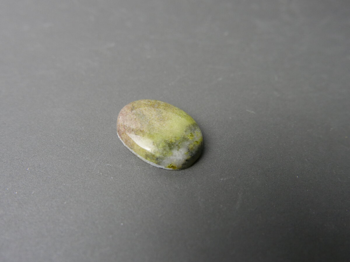 Caboixó de serpentina del Ripollès, Girona. Fa 31mm x 14mm x 5mm.