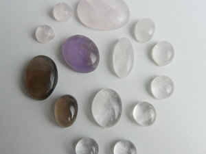 Nous caboixons disponibles de quars fumat i d'ametista de Sils (Girona), Quars transparent de Tordera (Barcelona) i quars rosa de Perenya, Salamanca. Disponible a la pàgina caboixons de quars