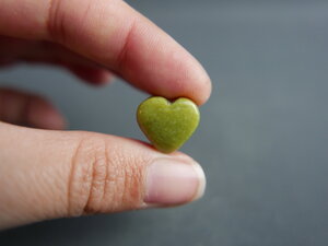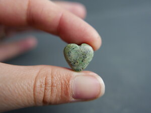 Nous caboixons en forma de cor de serpentina del Ripollès, Girona. Disponibles a la pàgina caboixons de serpentina del Ripollès