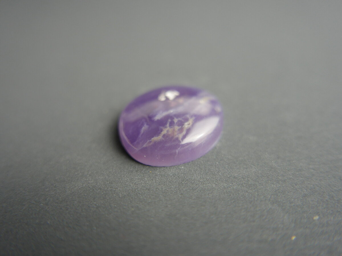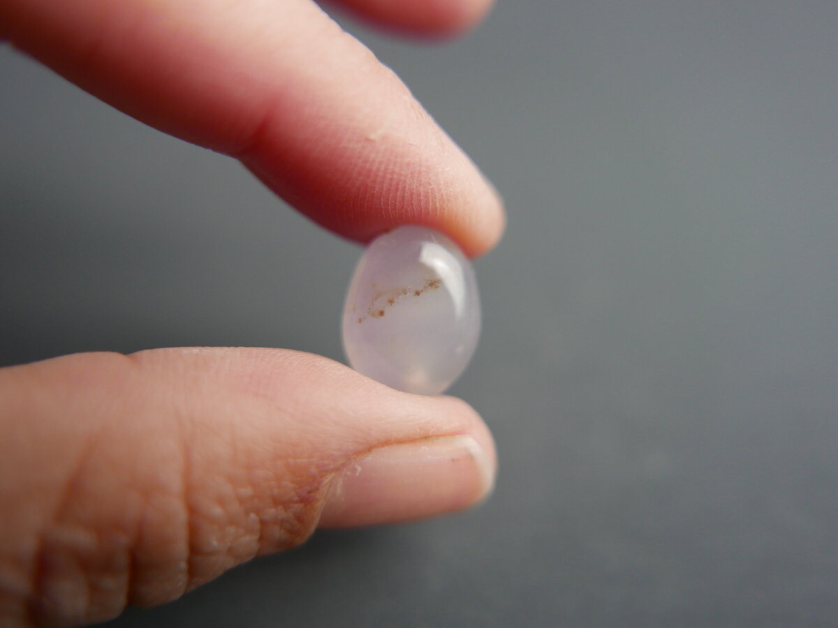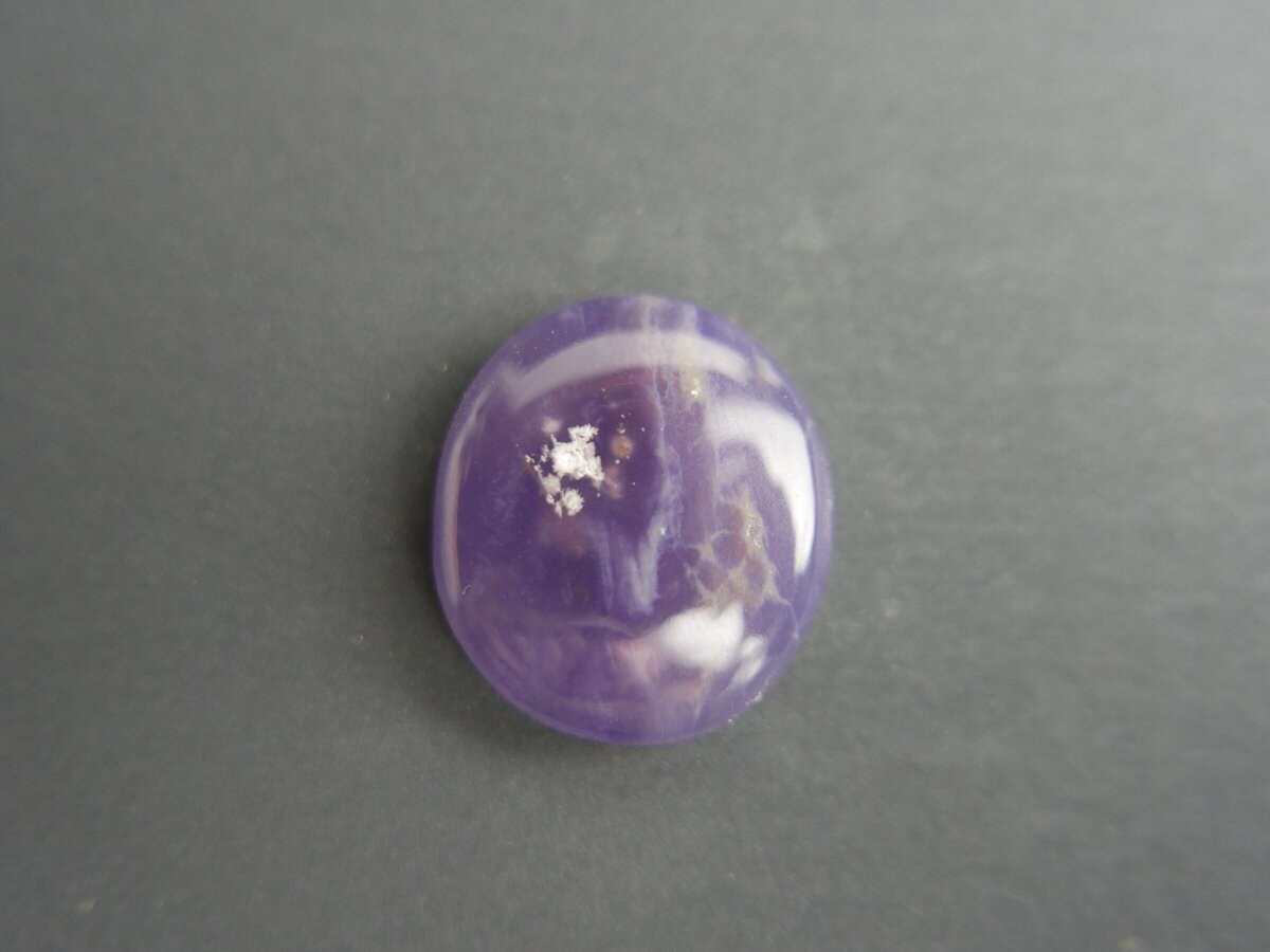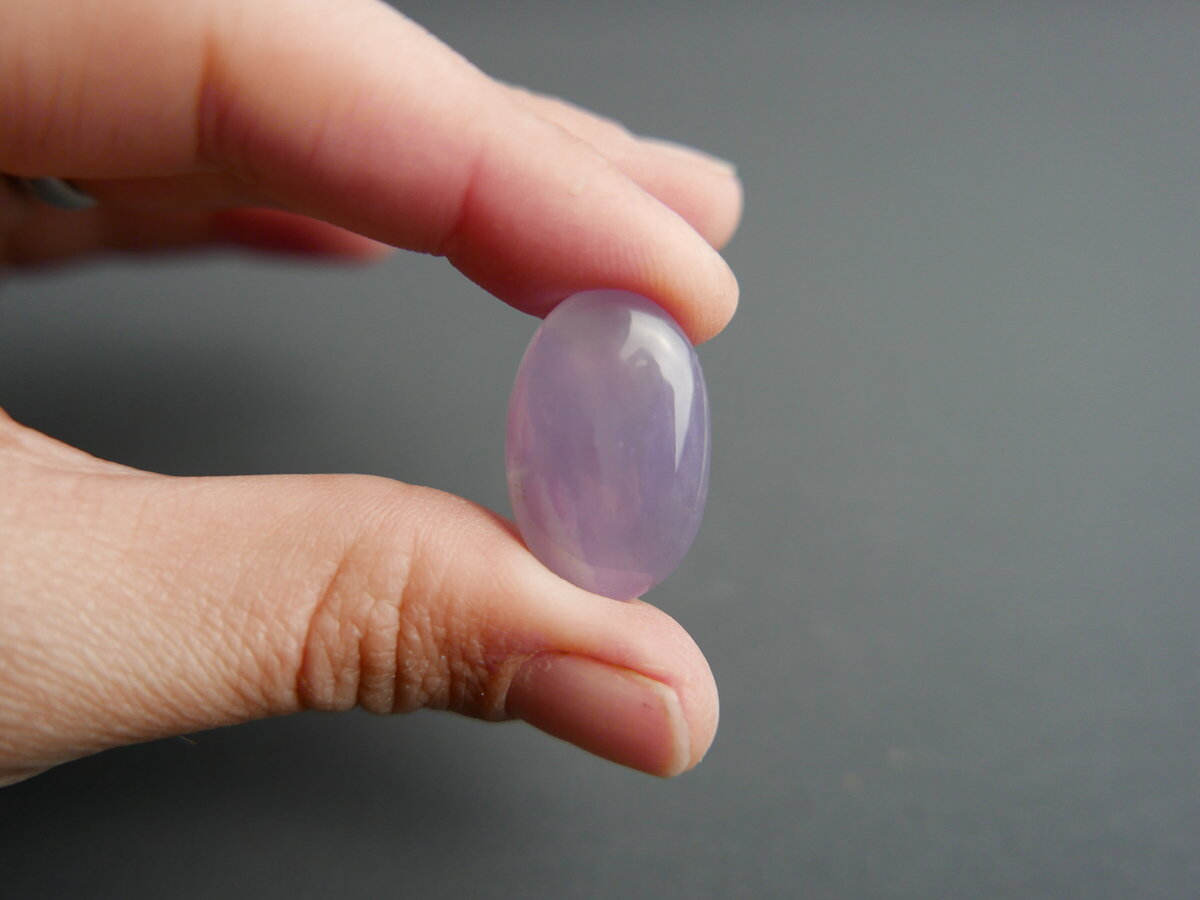 Caboixó de calcedònia lila de Ayampe (Equador). Fa 23,5mm x 15mm x 5mm.