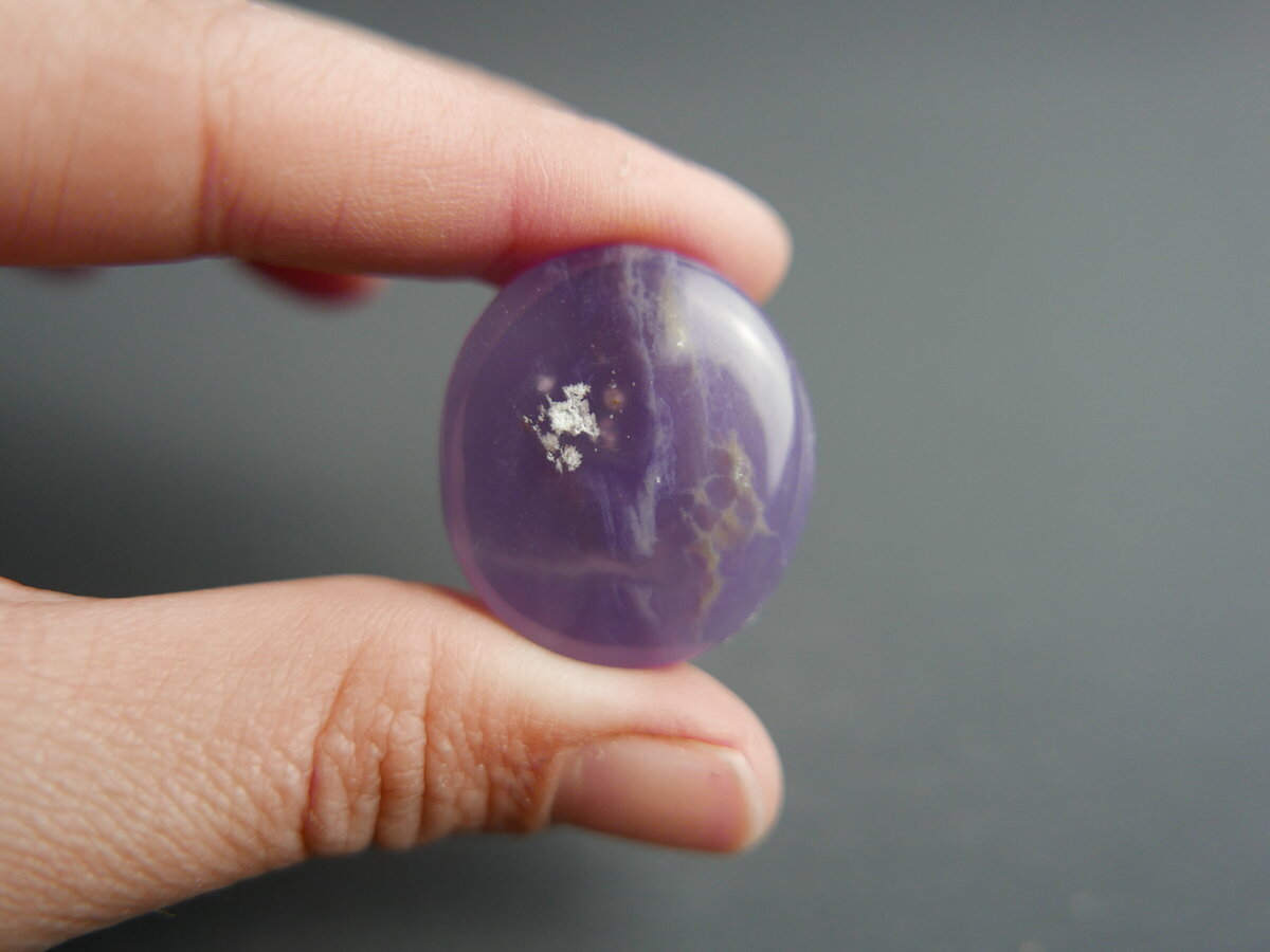 Caboixó de calcedònia lila de Ayampe (Equador). Fa 28mm x 25mm x 6mm.