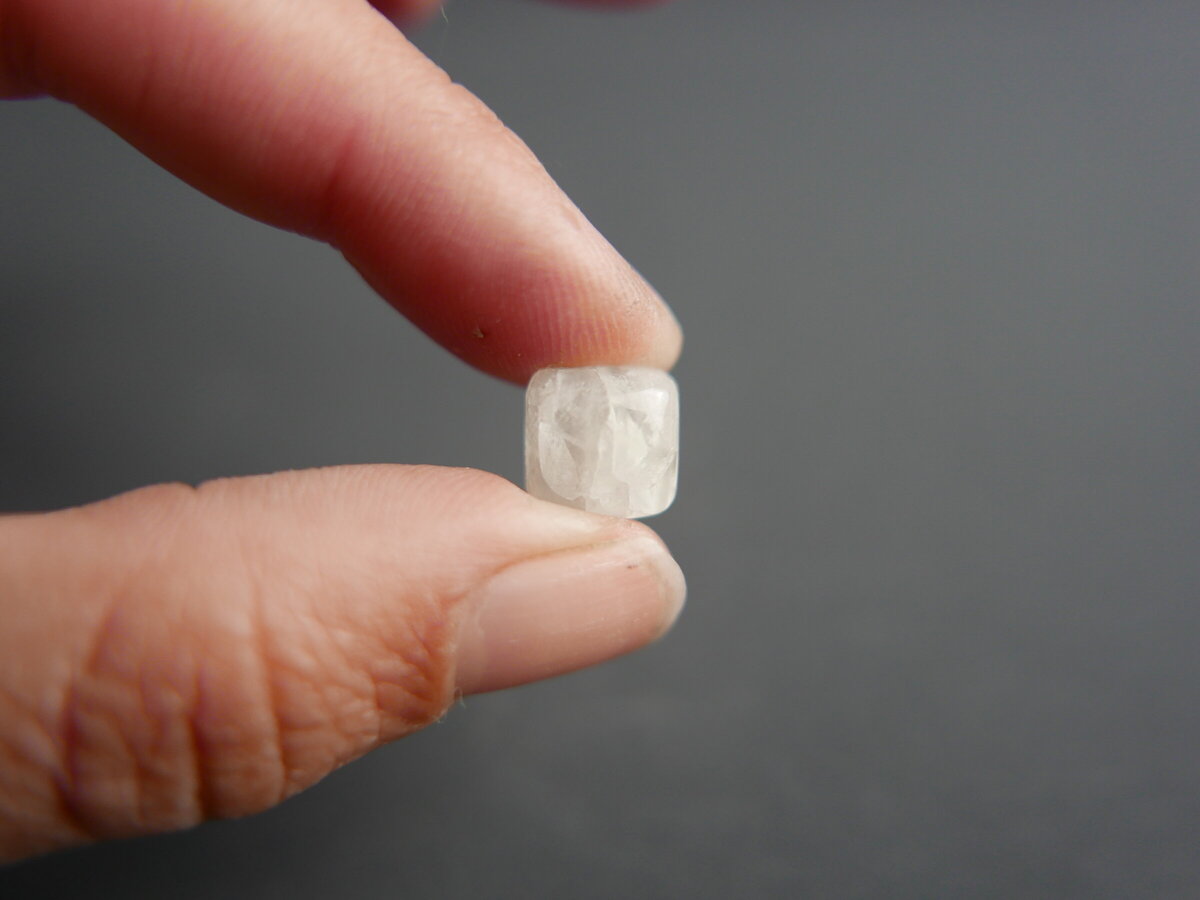 Caboixó de fluorita de viladrau (Girona). Fa 9mm x 9mm x 4mm.