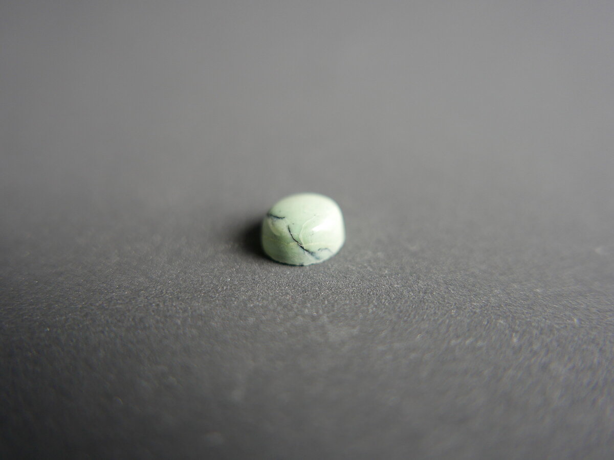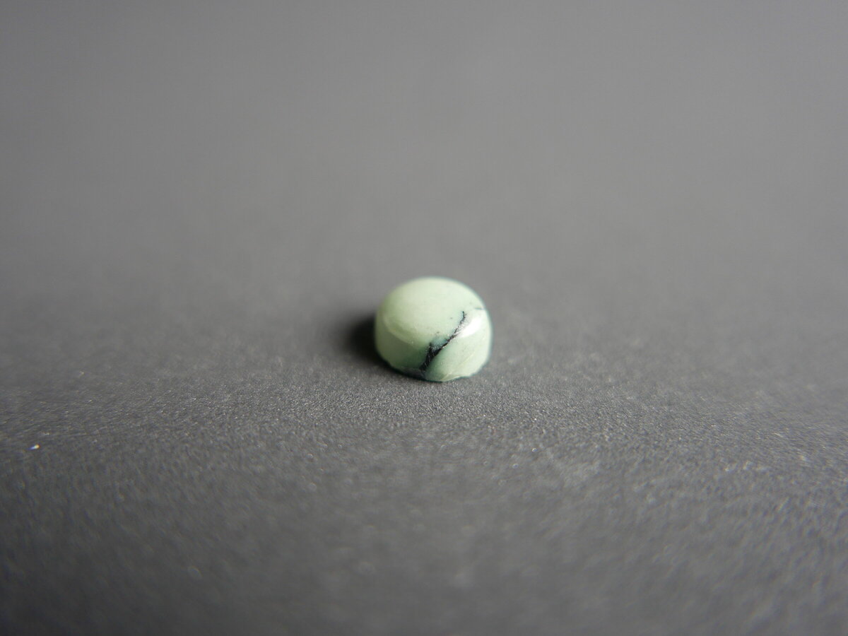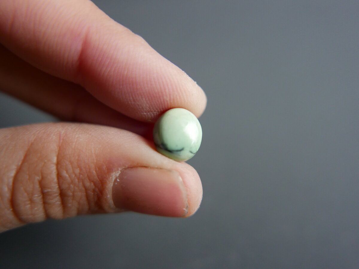 Caboixó de variscita de montcada i Reixac ( Barcelona ). Fa 9,5mm x 8mm x 4mm.
